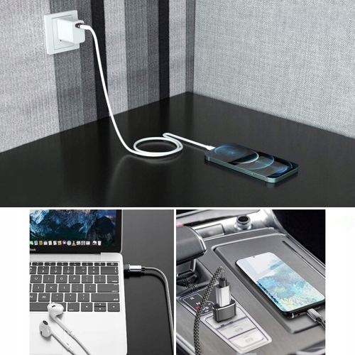 - Ładowanie urządzeń wyposażonych w kabel USB-C - USB-C, ładowarką ze standardowym portem USB-A.