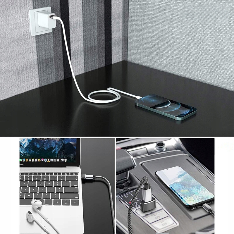 umożliwia połączenie takich urządzeń jak telefon czy tablet z komputerem, power bankiem czy ładowarką. Nasz adapter pozwala na ładowanie, transmisje danych oraz synchronizacje urządzeń. Przejściówka jest kompatybilna z ładowarkami samochodowymi wspierającymi fast charging.