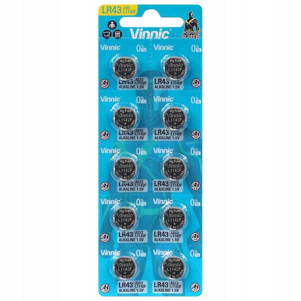 Bateria Vinnic G12 / AG12 / LR43 / LR1142 - 10 sztuk