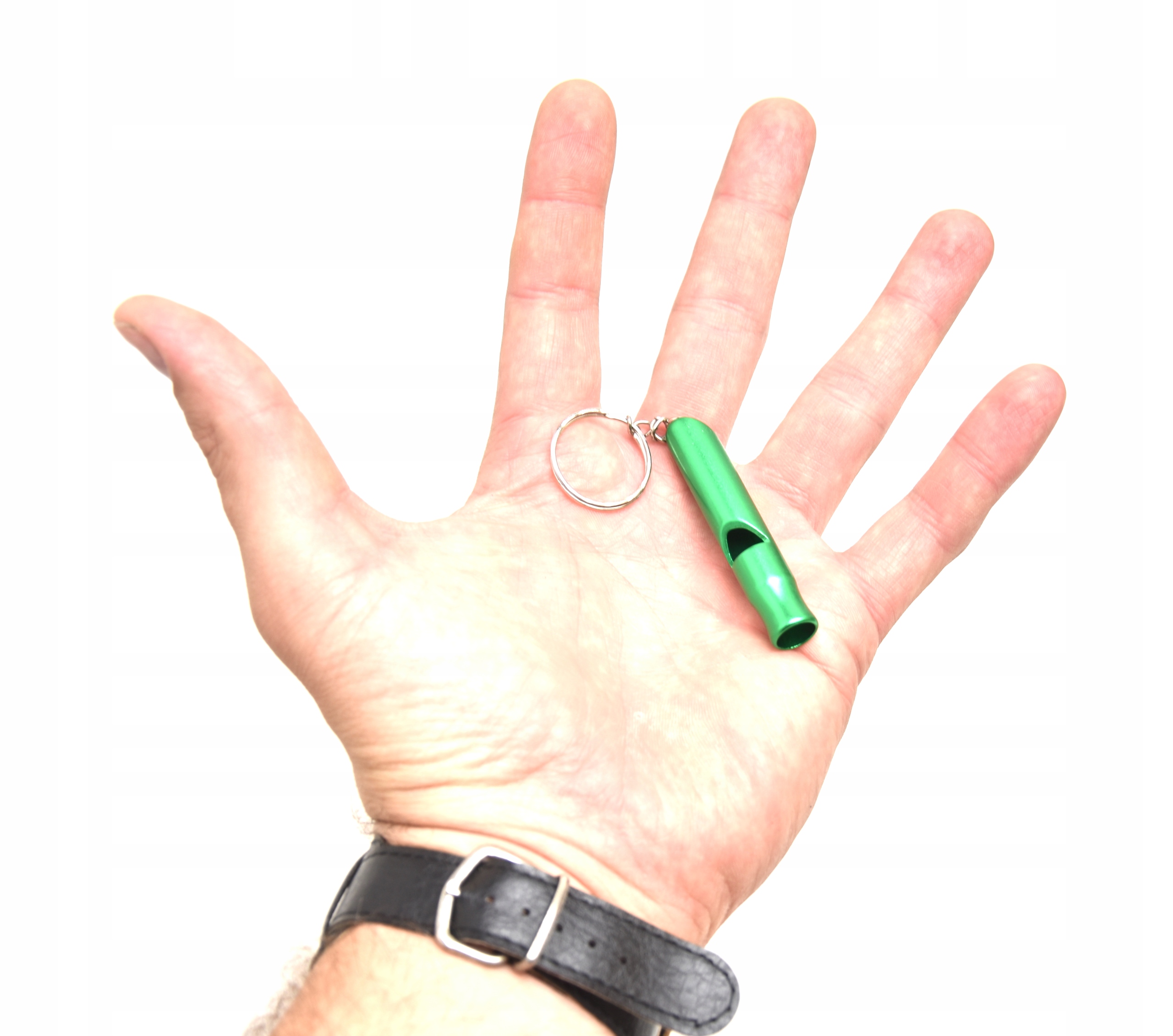 - Z wygodną metalową zawieszką. Praktyczny drobiazg dla turystów, żeglarzy, pasjonatów ASG i sportów ekstremalnych. Pozwala na sygnalizację dźwiękową w grach sportowych i zajęciach terenowych. Umożliwia też wezwanie pomocy po wypadku lub zwoływanie innych osób w terenie. Może się przydać nawet na grzybach, gdy ktoś się zgubi w lesie.