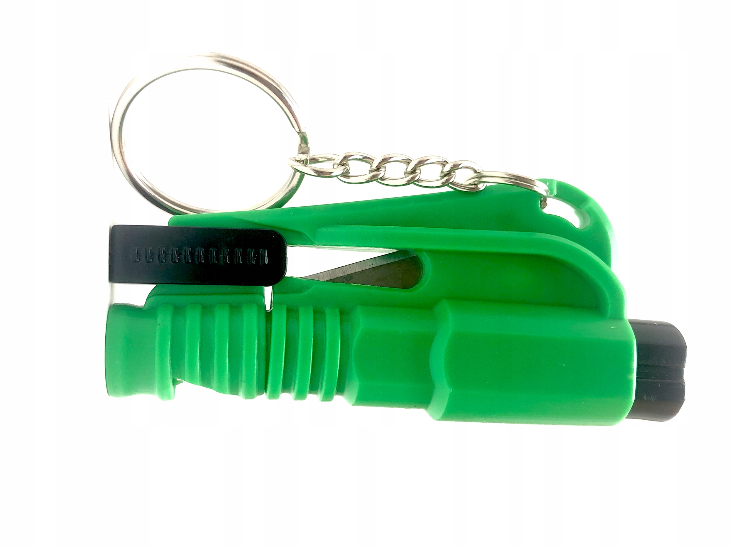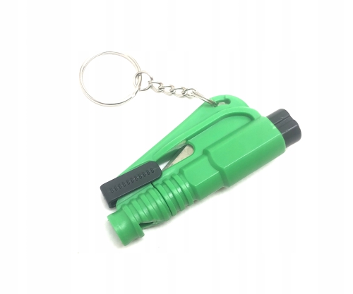 - Narzędzie 3w1 - młotek do rozbijania szyb (hartowanych, nielaminowanych), przecinak pasów bezpieczeństwa, breloczek do kluczyków samochodowych oraz gwizdek.