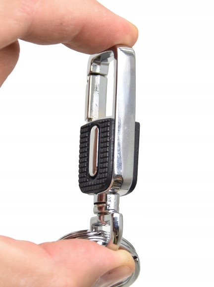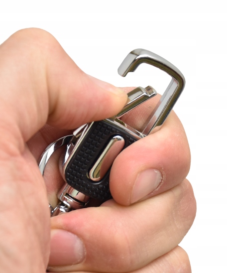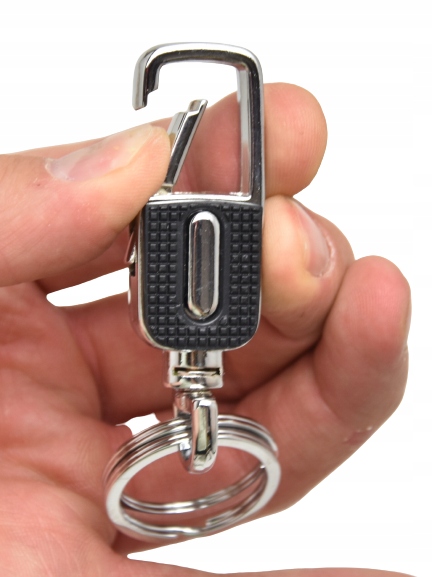 - Wersja praktycznego karabińczyka producenta KING ♛. Możesz na nim łatwo umieścić klucze lub cokolwiek innego, co musisz mieć pod ręką. Wartościowe przedmioty są zawsze pod ręką i bezpieczne - dzięki sprężynowemu mechanizmowi blokującemu.