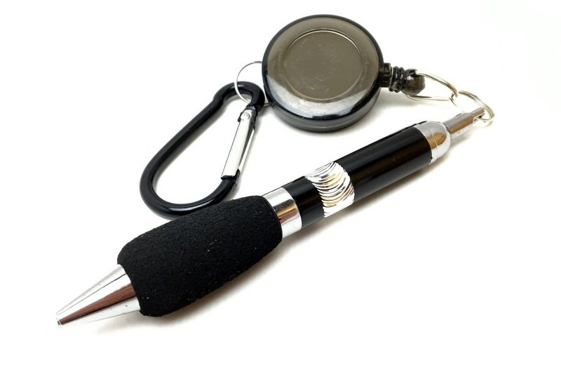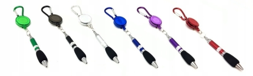 Brelok do kluczy mocny aluminiowy karabińczyk z długopisem na lince z klipsem