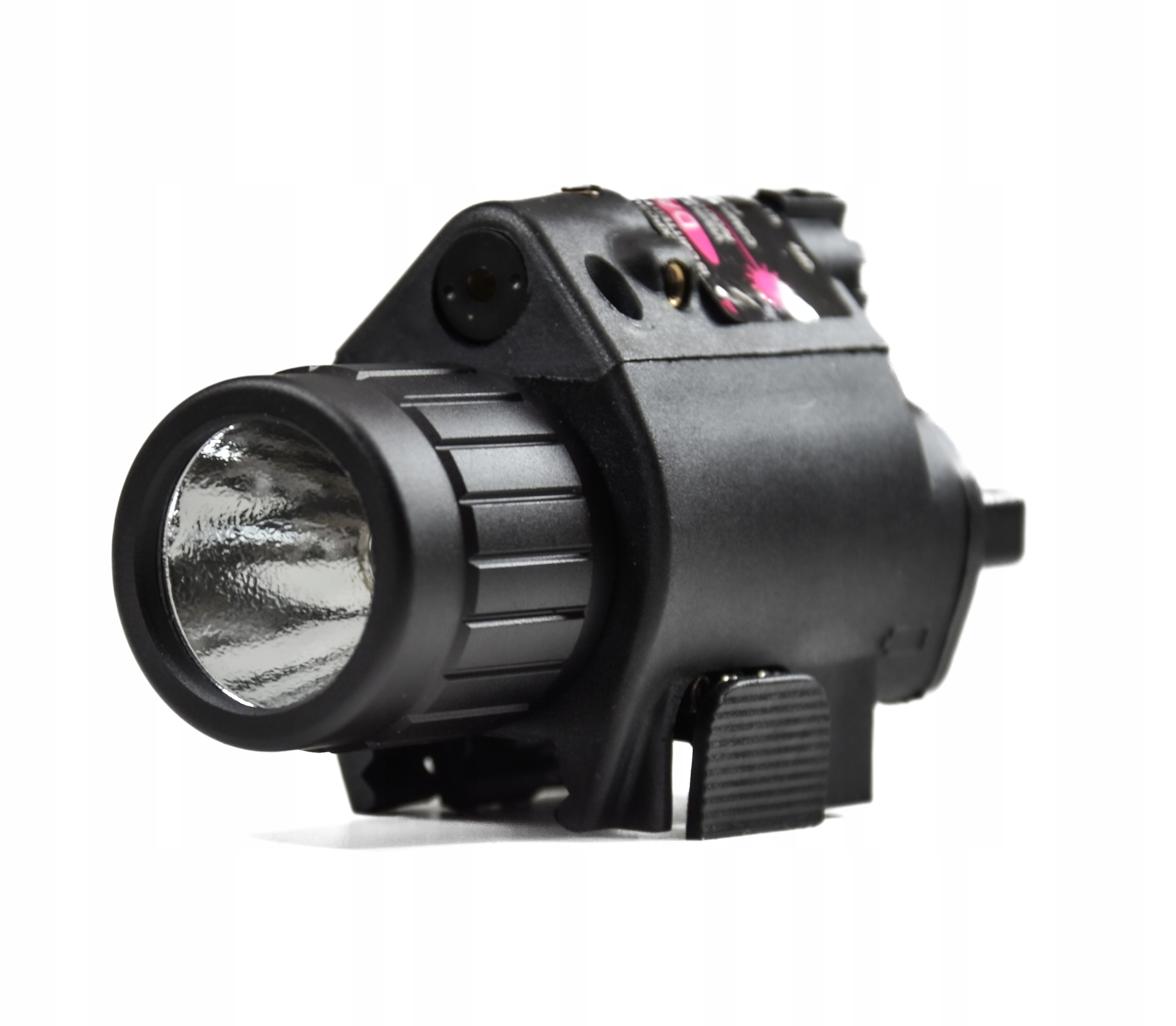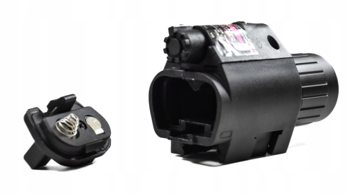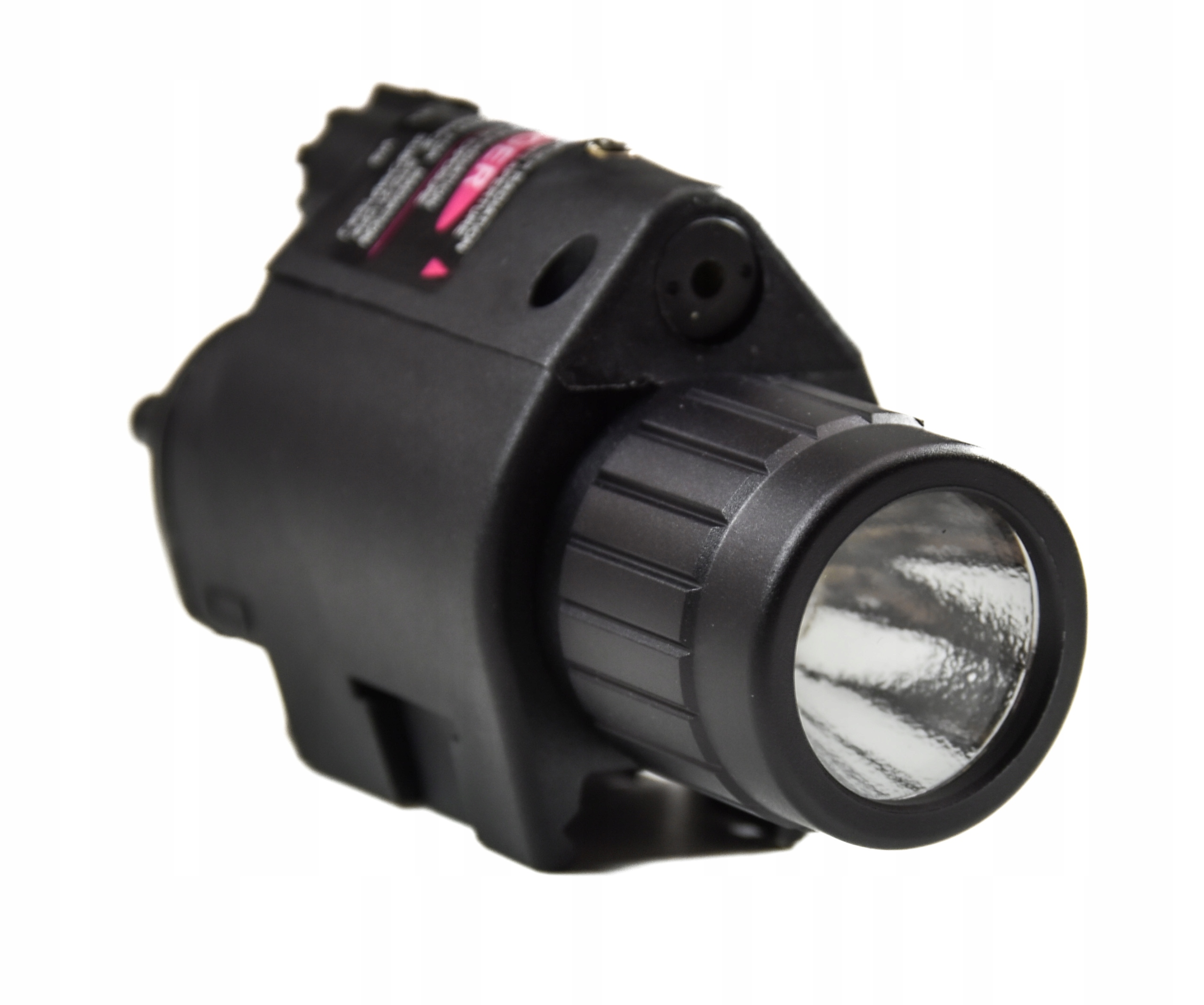 - Całość zasilana jest dwoma bateriami CR123A lub akumulatorami 16340 (brak w zestawie) co dzięki wydajnej diodzie o barwie Neutral White i optyce, zapewnia strumień światła na poziomie 200 lumenów i zasięg do 100 m. Czerwony laser o mocy <5mW ułatwia szybkie namierzenie celu bez konieczności zgrywania muszki ze szczerbinką. Model BALDR Pro wyposażono w szynę montażową kompatybilną ze standardem 21 mm System zaciskowy pozwala na szybkie zamocowanie latarki na broni.