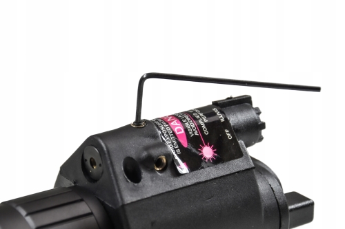 - Dzięki imbusowi dołączonemu do zestawu możemy ustawić dokładność świecenia celownika laserowego aby nasz punkt świecił prawidłowo a my strzelali celnie