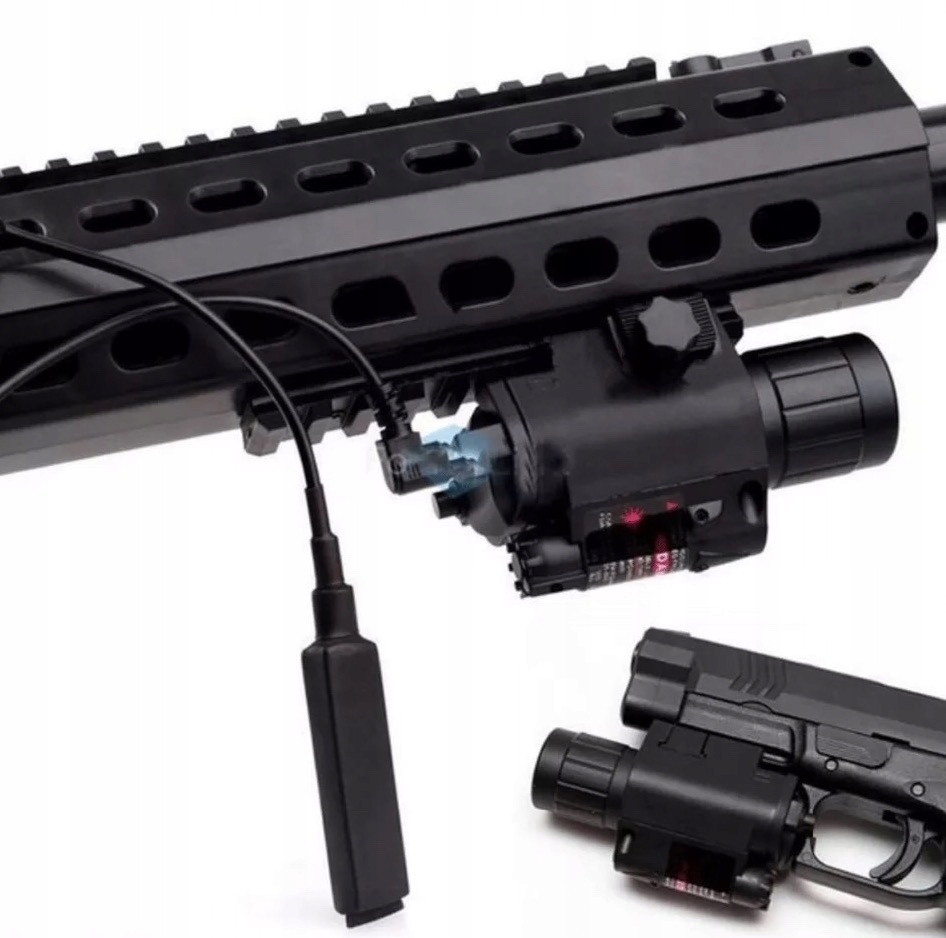 - Przycisk do szybkiego uruchomienia lasera lub latarki lub w combo gdzie lekkie naciśnięcie w około 20 do 80 procent podświetla chwilowo na czas trzymania lub gdy na 100 procent do końca uruchamia na stałe lub wyłącza na stałe, kapitalne rozwiązanie w trudnych sytuacjach bojowych.