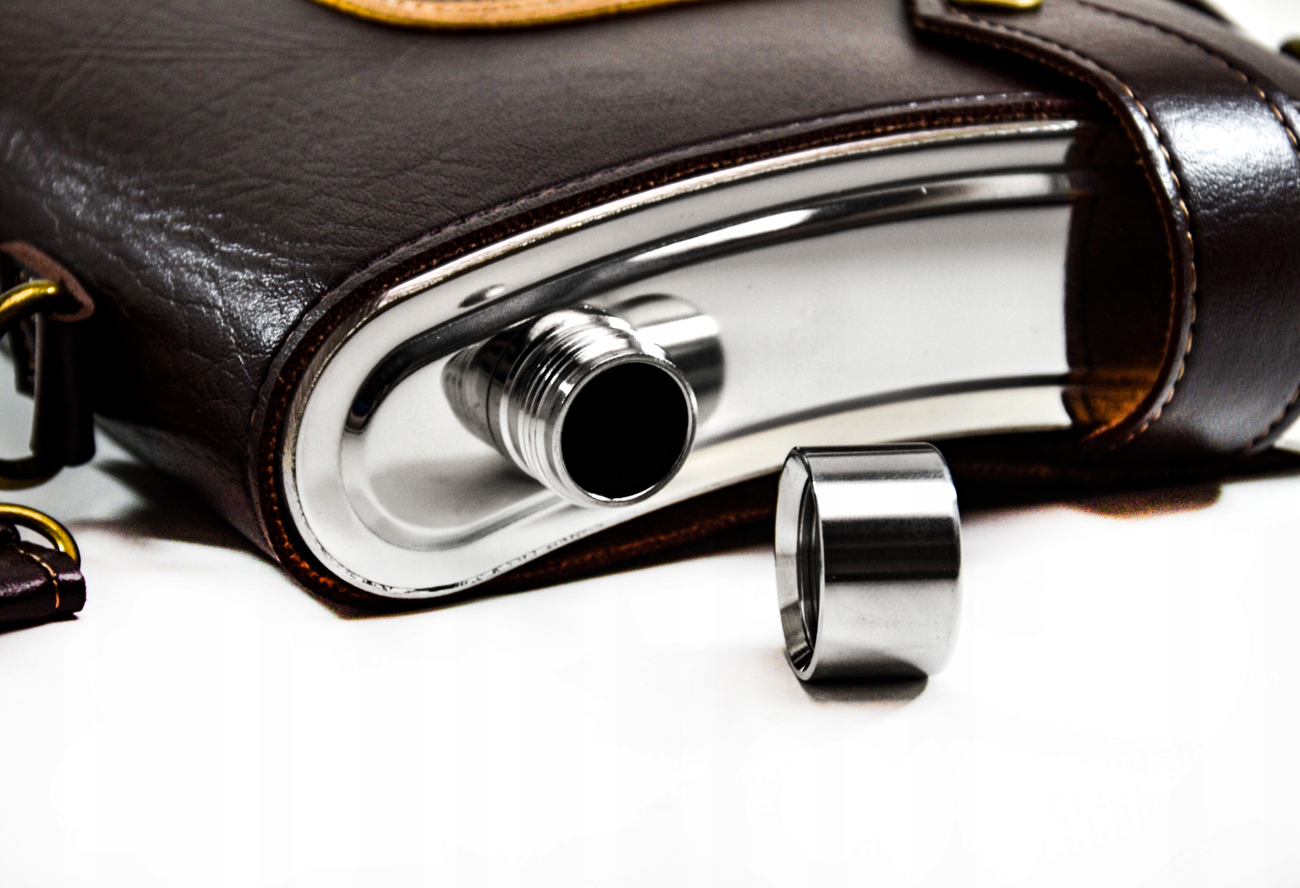 - Pokrowiec na piersiówkę wykonany został z eco-skóry bardzo dobrej jakościowo
