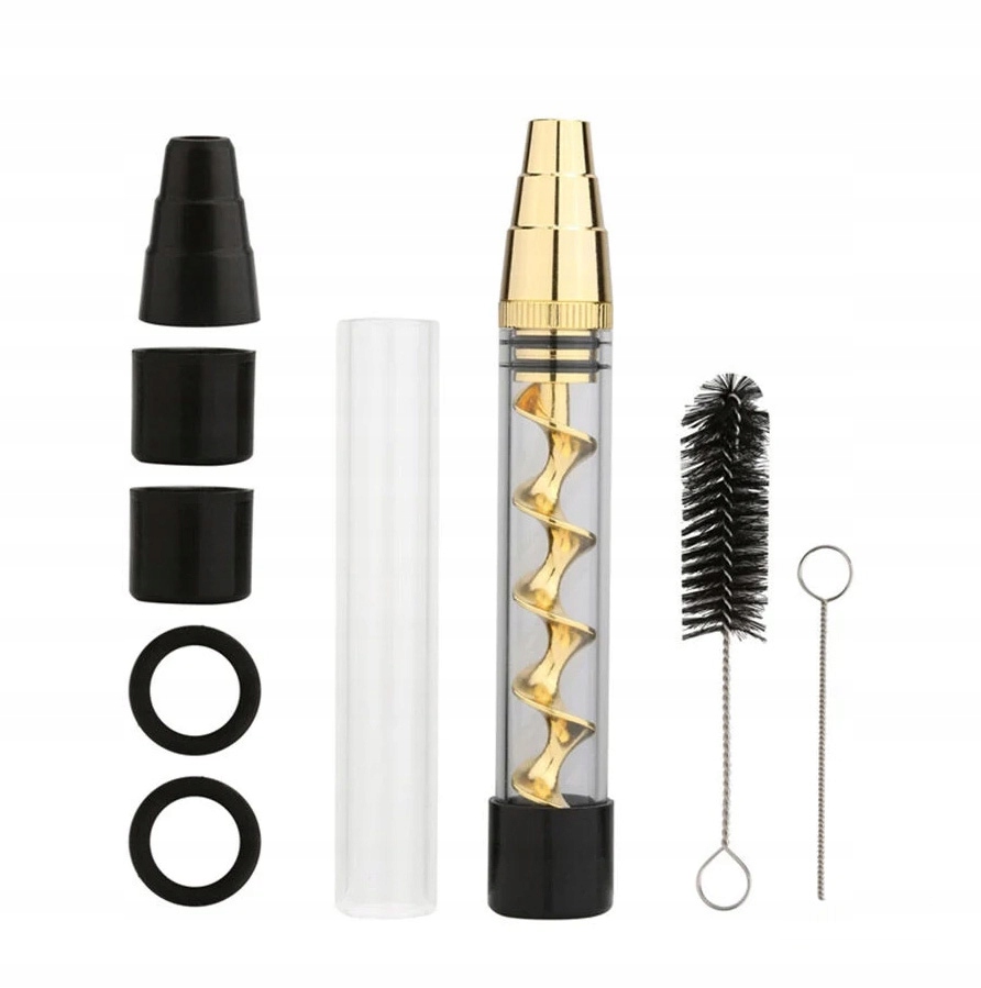 - Zastosowana konstrukcja spiralna wydłuża dwukrotnie drogę jaką pokonuje dym zanim dotrze do ust zapewniając delikatniejsze i chłodniejsze palenie.