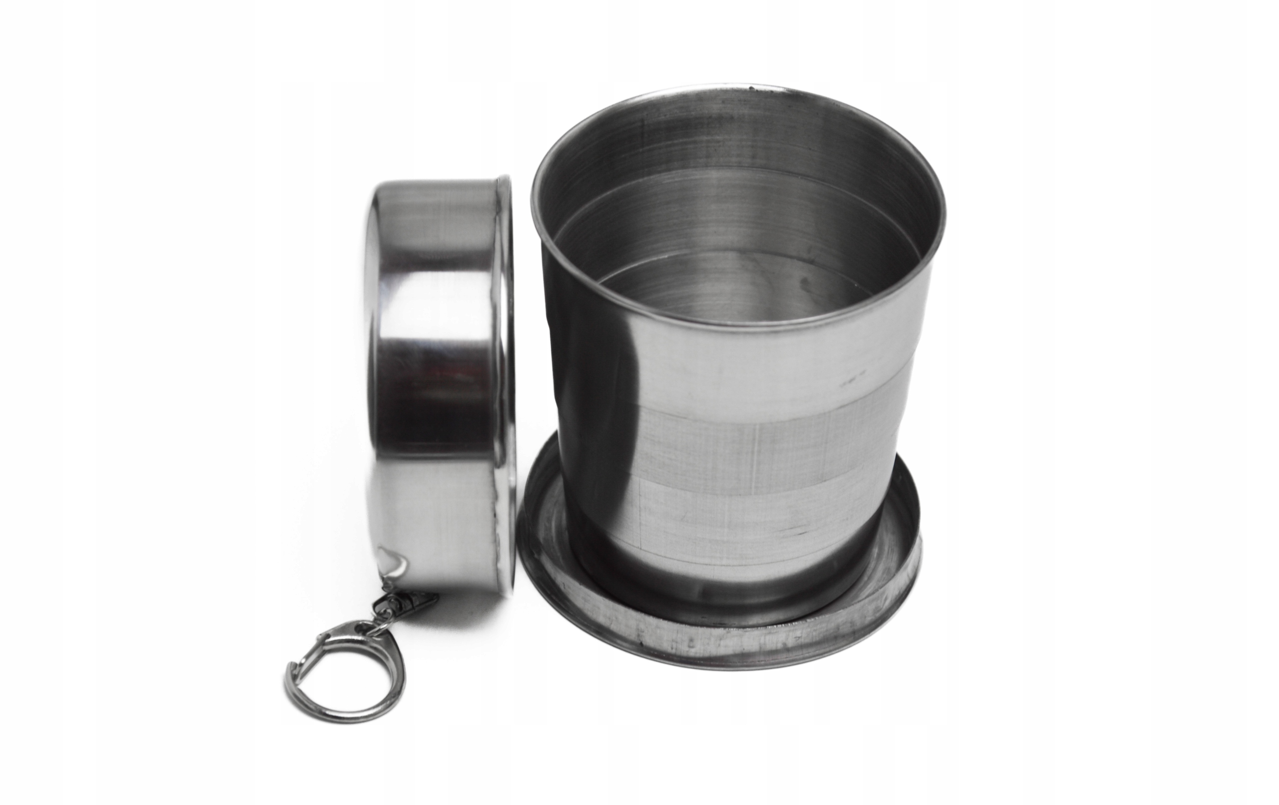 - Kieliszek składany teleskopowo dzięki czemu zajmuje mało miejsca i idealnie nadaje się jako brelok do kluczy. Wykonany jest ze stali nierdzewnej, co pozwala zachować jego długą trwałość.