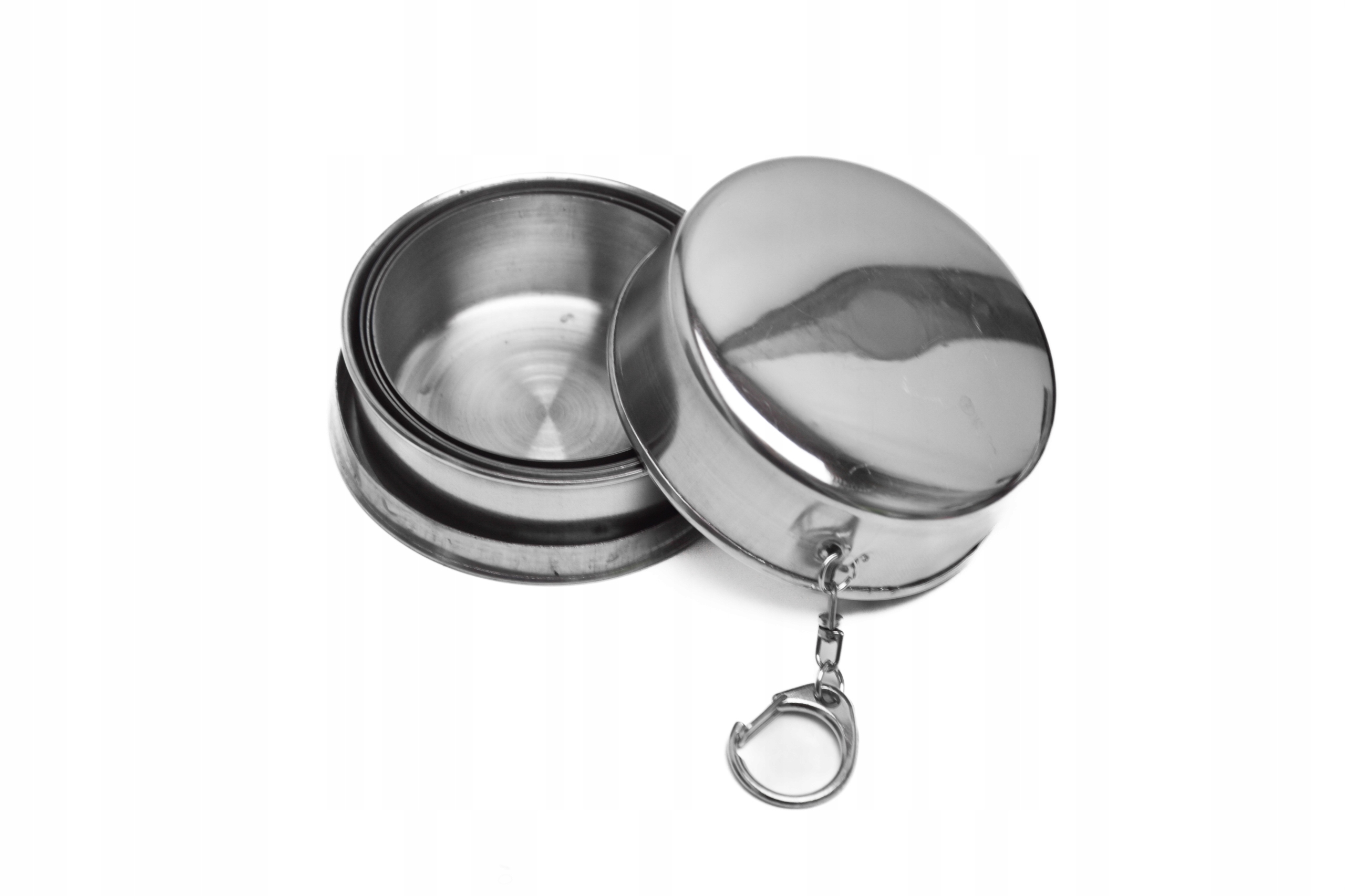 - Bardzo duży składany, turystyczny, podróżny kieliszek z solidnego metalu. Uchwyt do zawieszenia np. na smyczy lub doczepienia do kluczy. Wygodny i praktyczny. Zmieści się w kieszeni i zawsze możesz go mieć przy sobie.