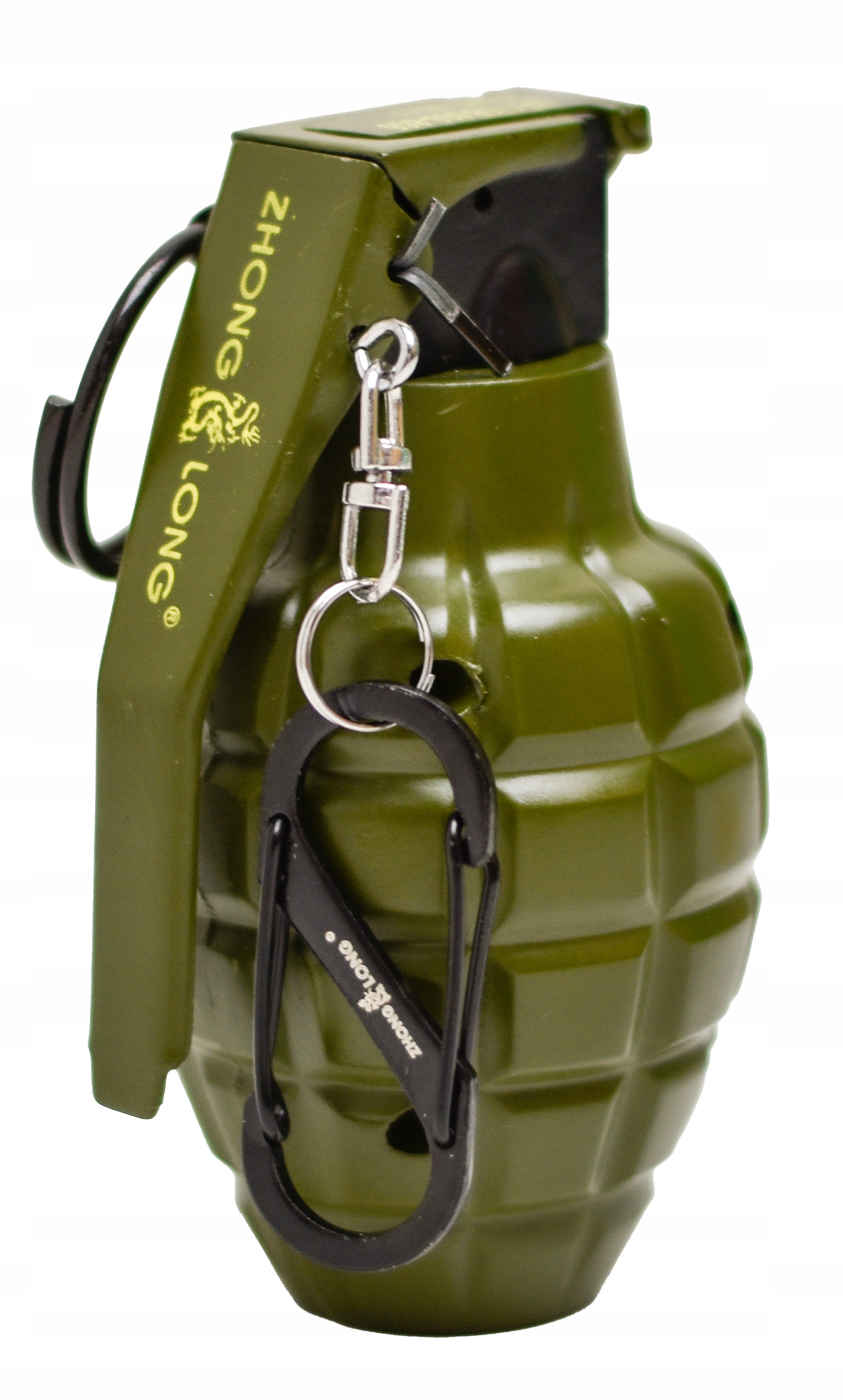 - Zapalniczka posiada również unikalny mini karabińczyk dzięki czemu szybko zaczepisz granat o szlufkę.