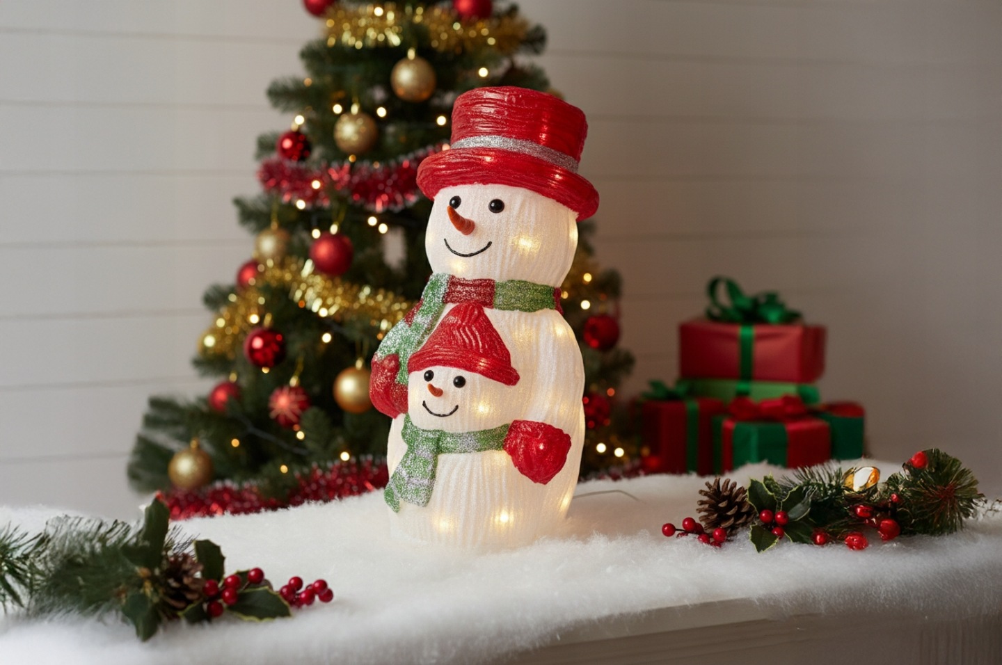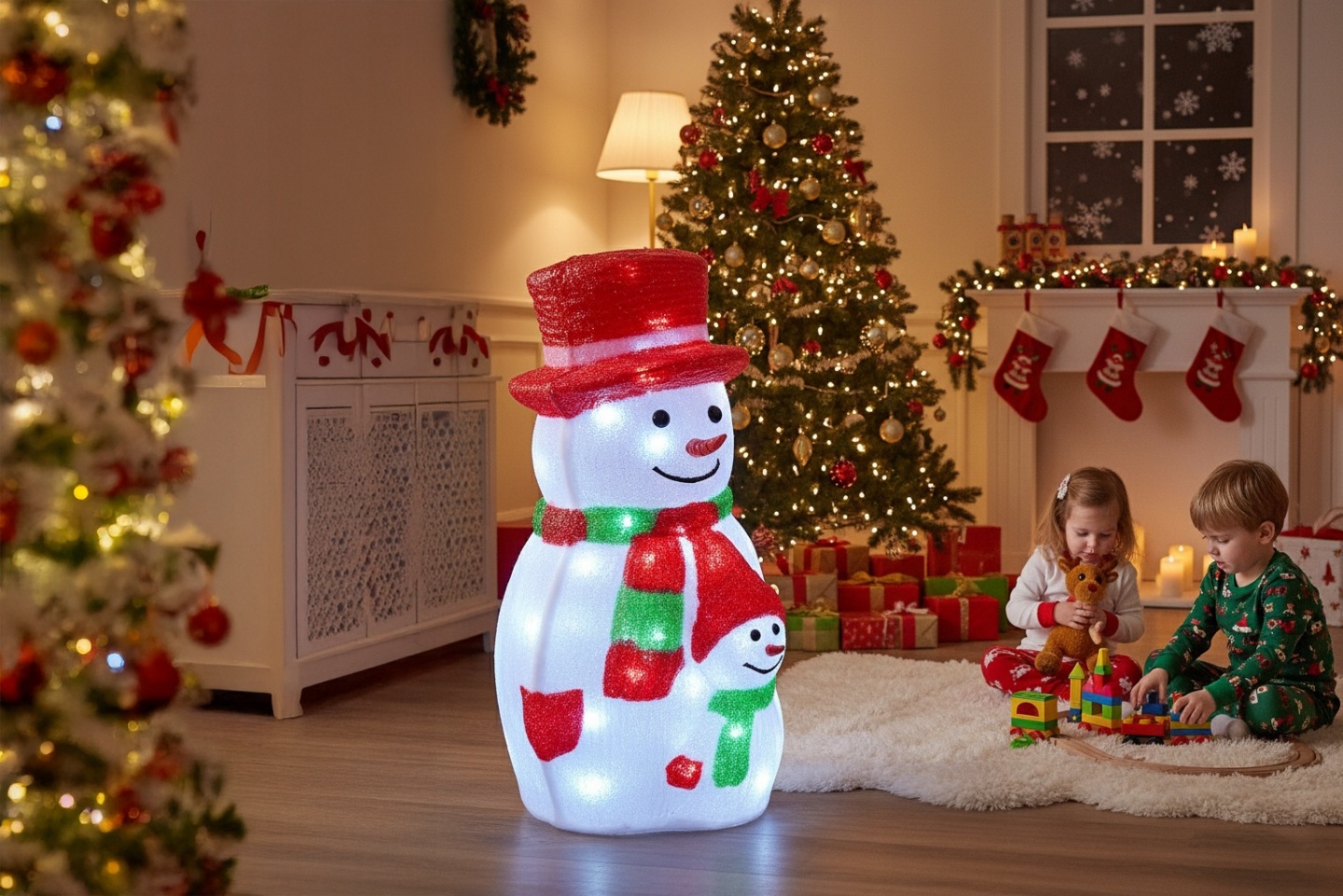 Zatrzymaj Magię Świąt – Akrylowy Bałwan LED 41 cm z Lodowym Połyskiem, Programatorem i Efektem Migotania!