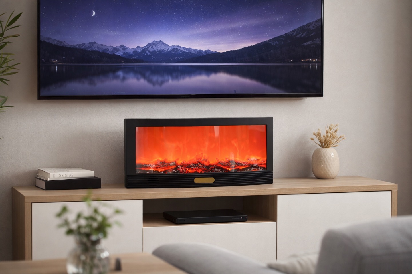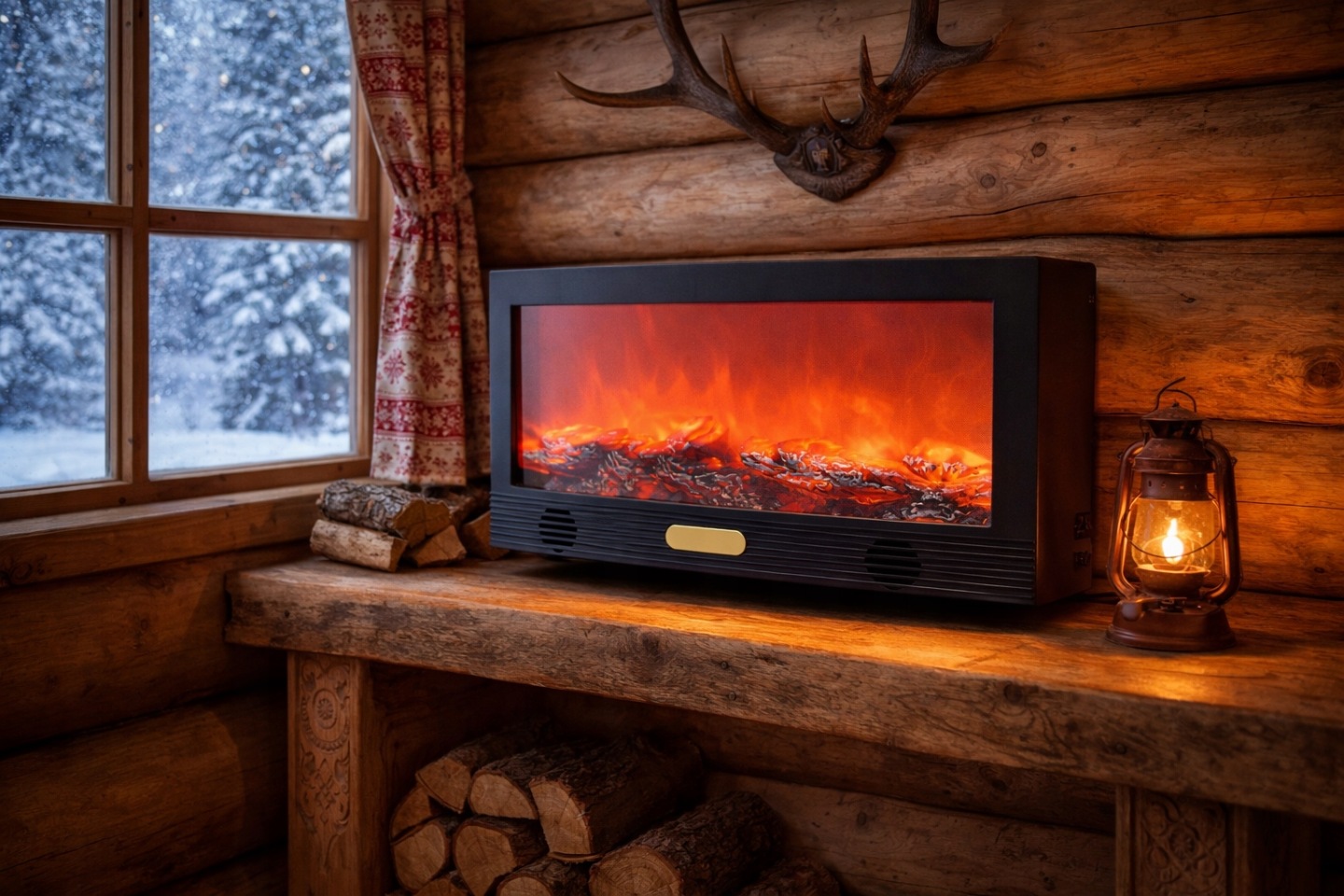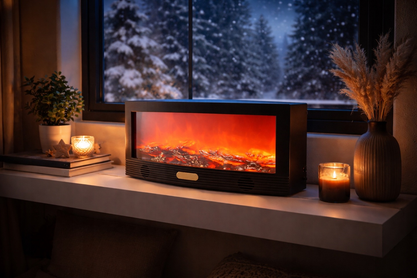Kominek LED Z głośnikiem Bluetooth – Duży Kominek z Efektem Płomienia