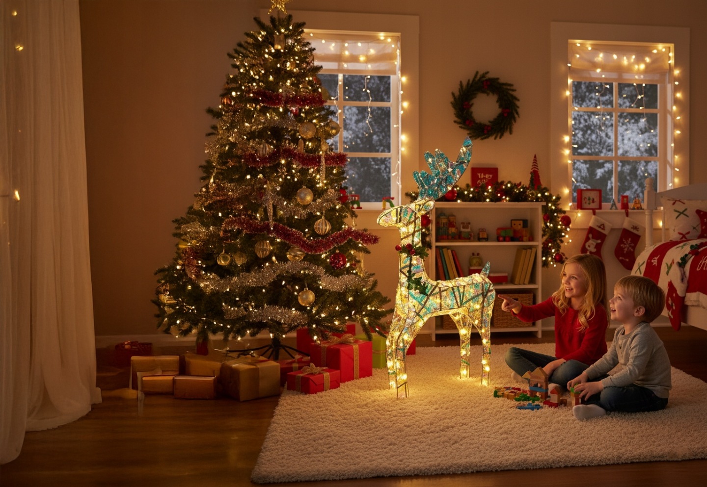 Zatrzymaj Magię Świąt – Duży Renifer LED 55 cm z Efektem Połysku i 8 Trybami Świecenia!