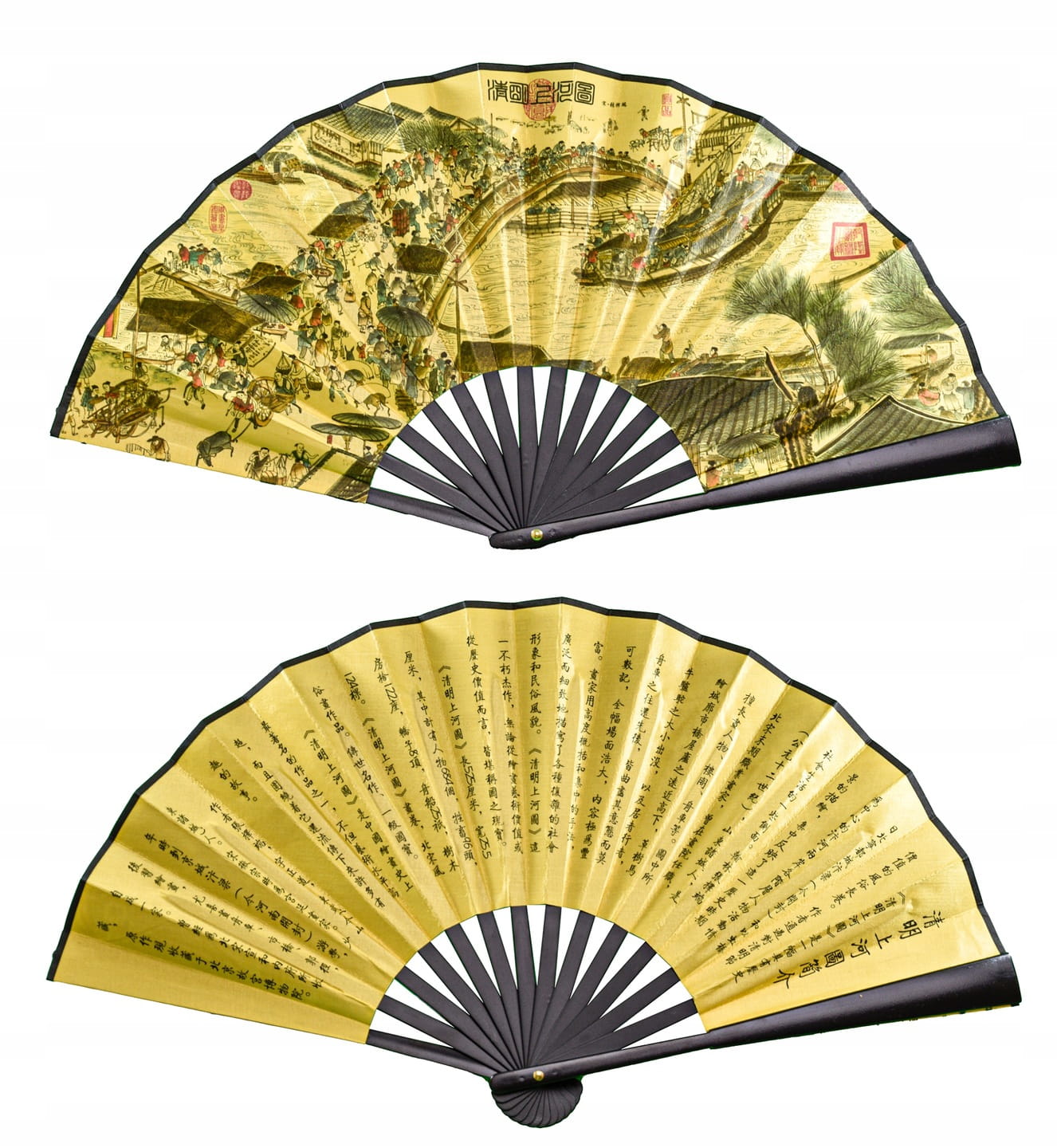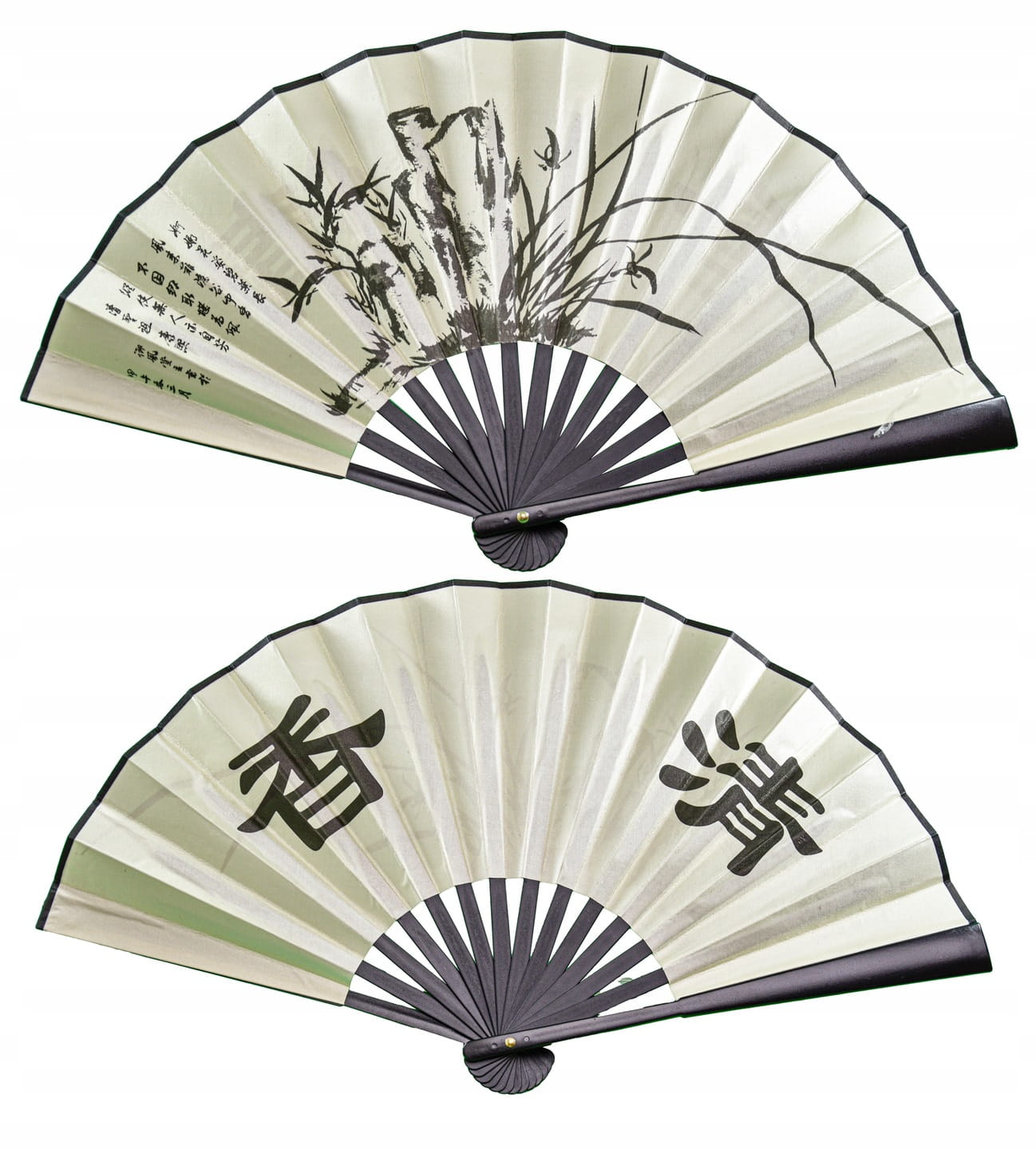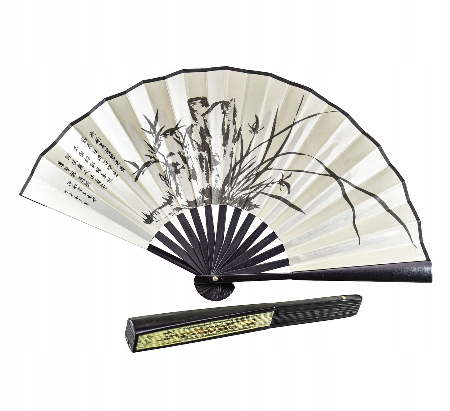 Duży wachlarz chiński drewniany ozdoba bambusowy składany wzory kung fu
