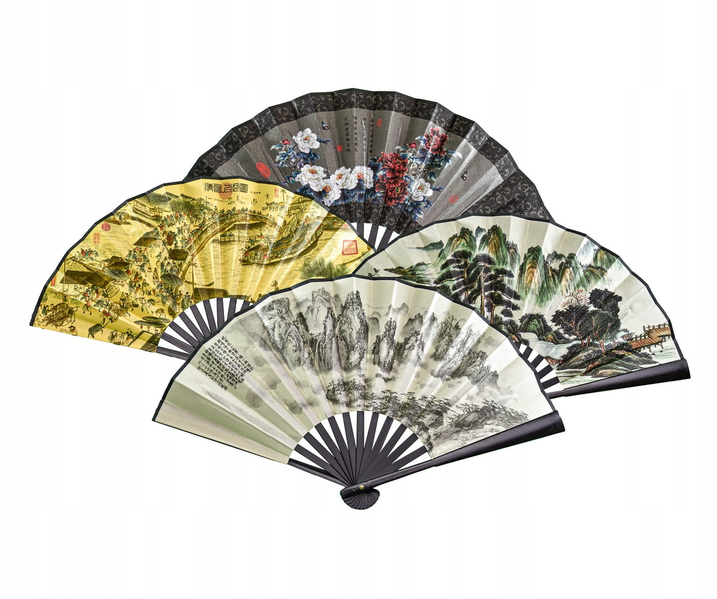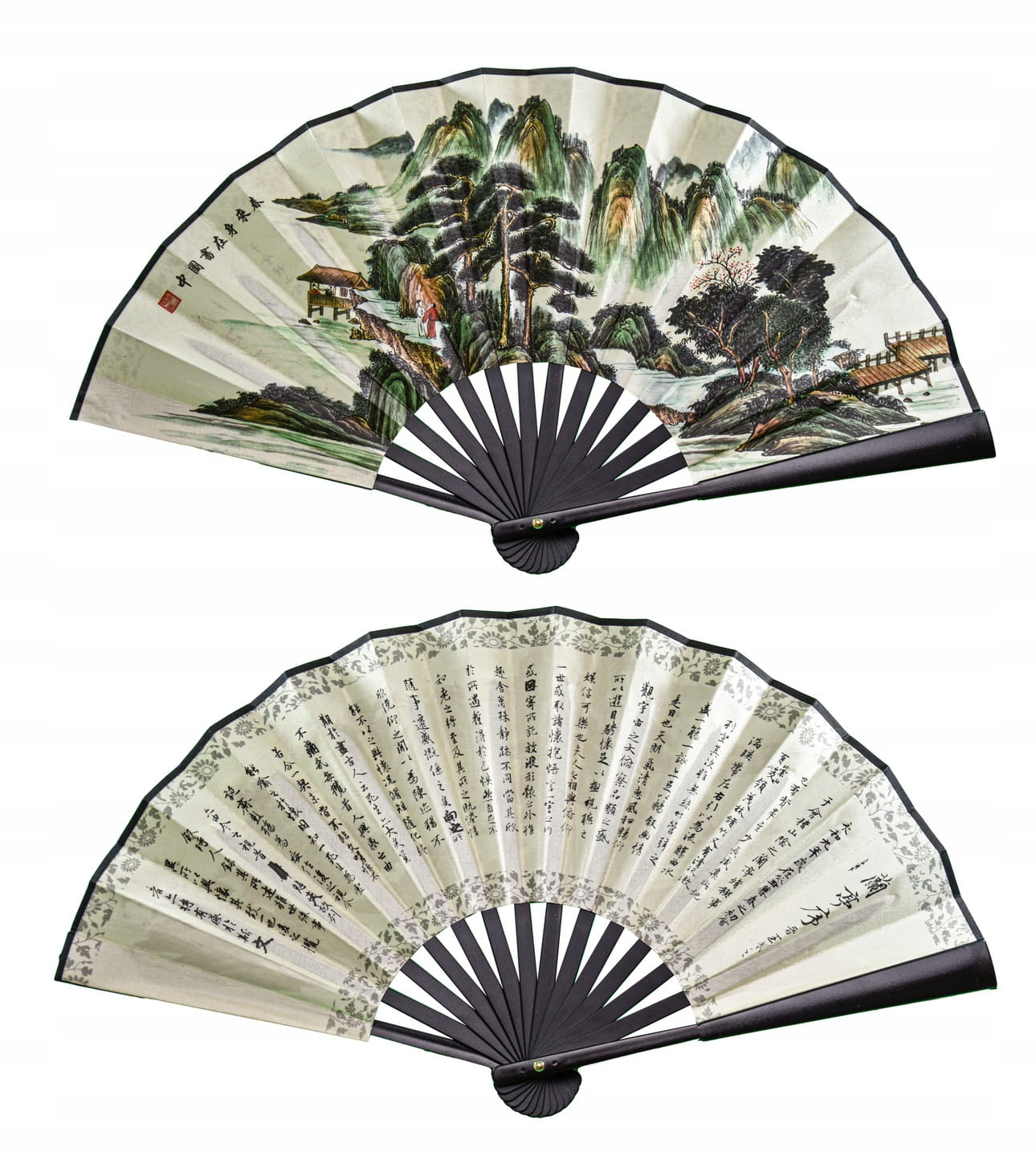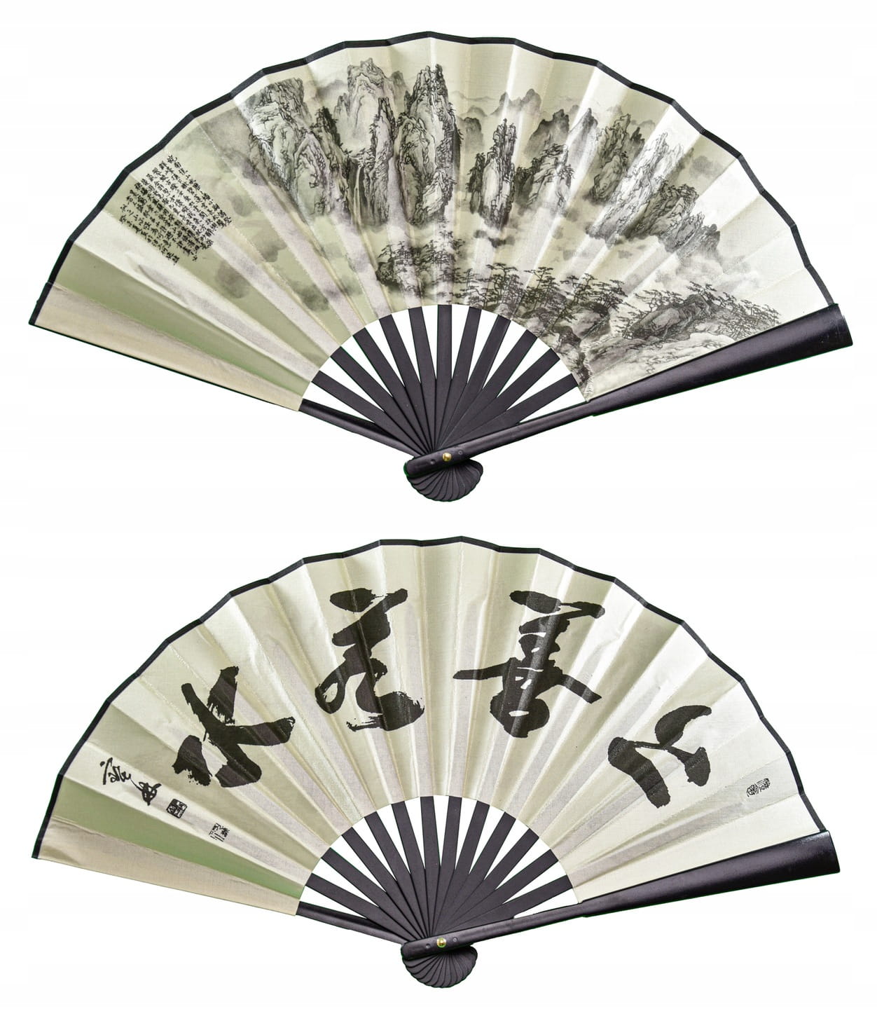 Duży wachlarz chiński drewniany ozdoba bambusowy składany wzory kung fu