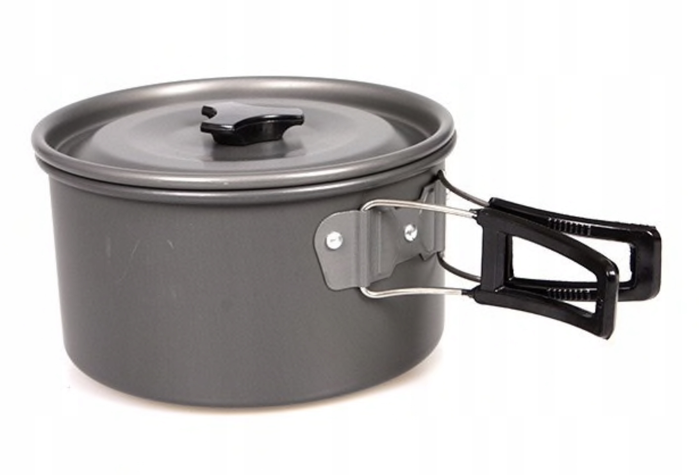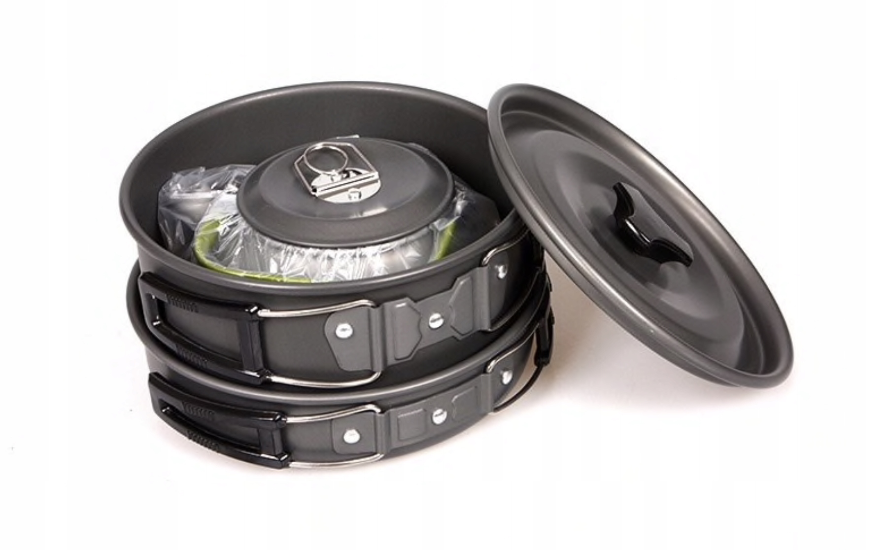 Naczynia zostały wykonane z anodowanego aluminium co czyni je trwałe lekkie (około 600g całość) i łatwe w utrzymaniu czystości.