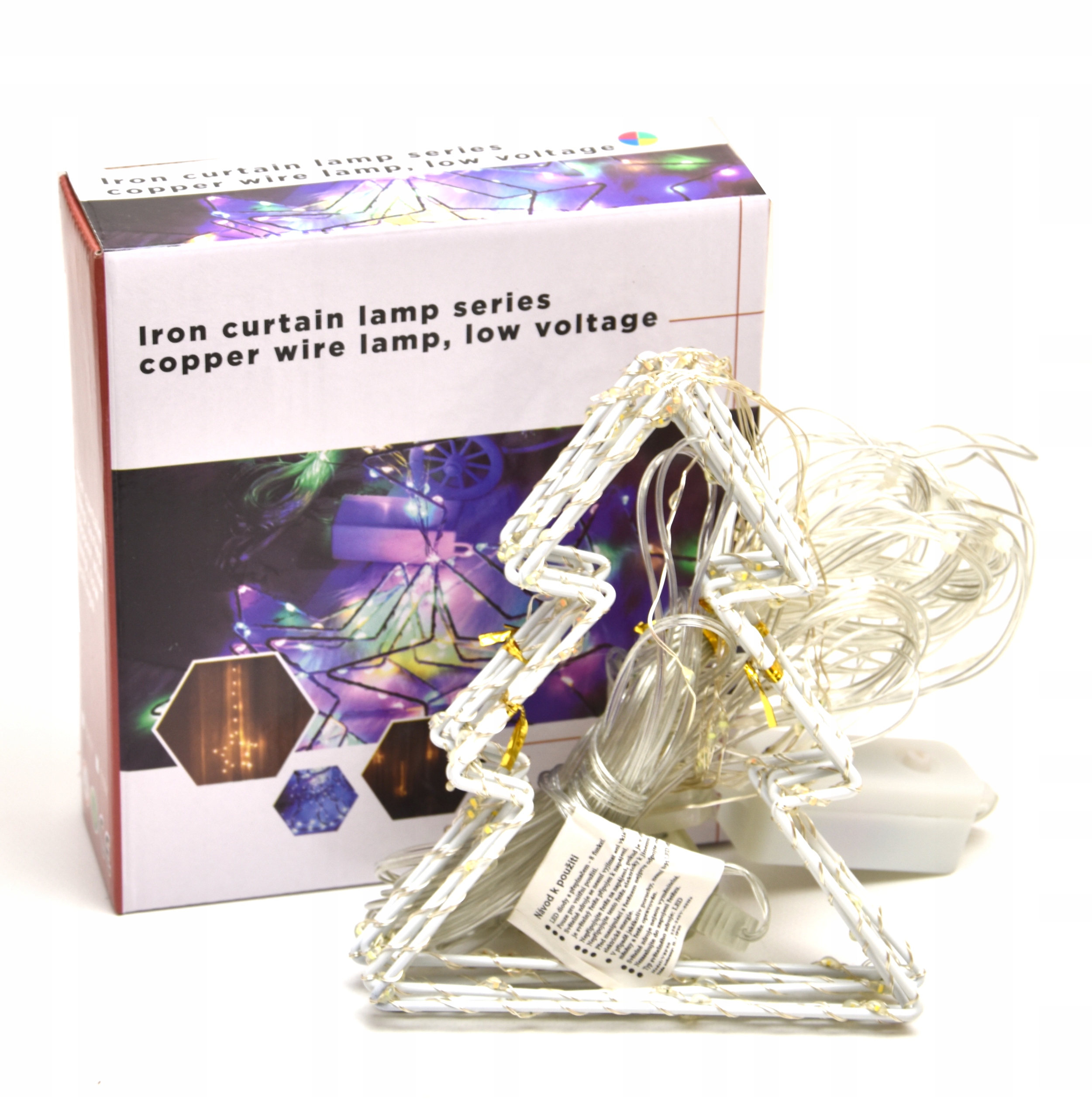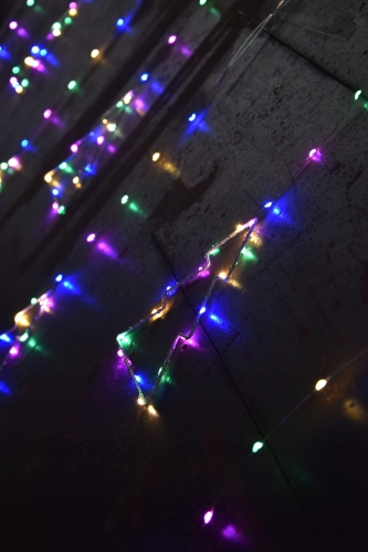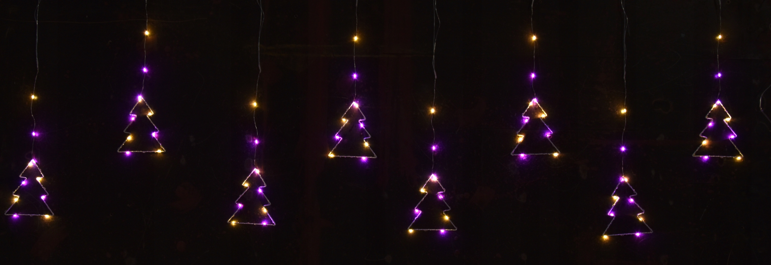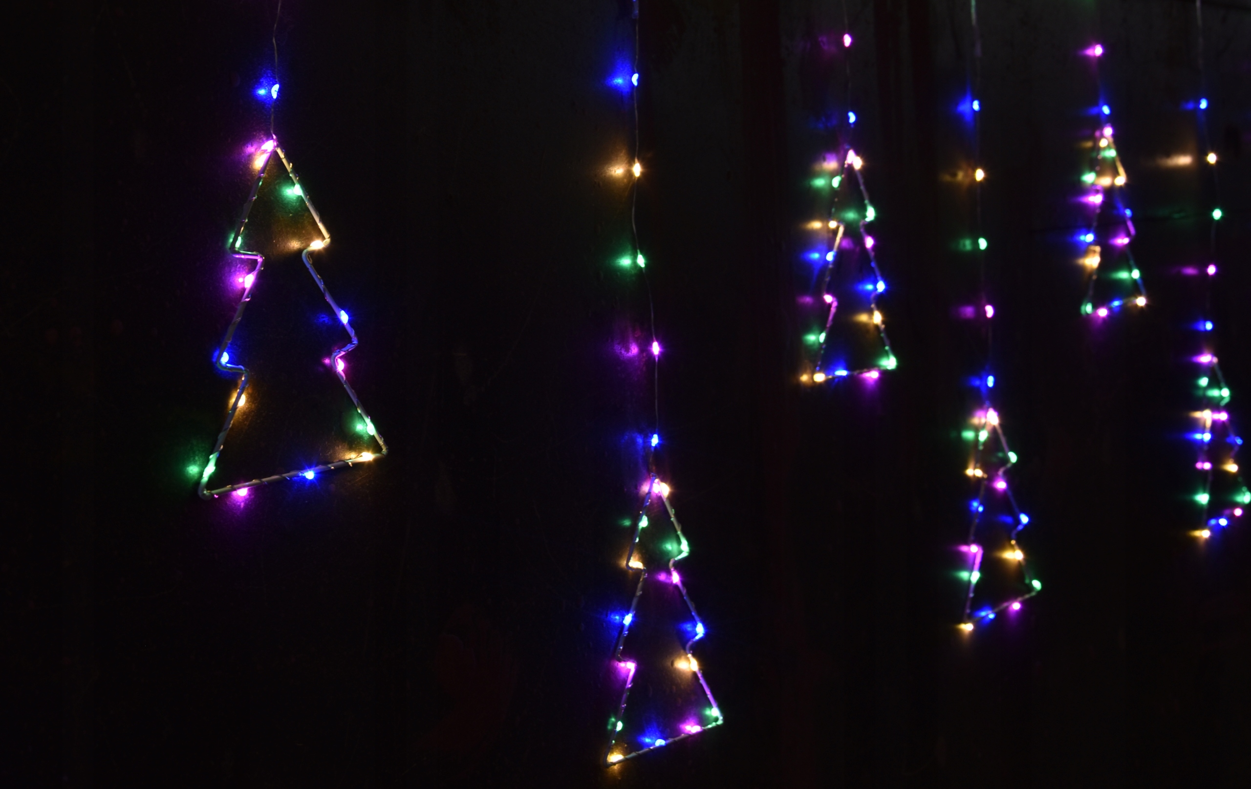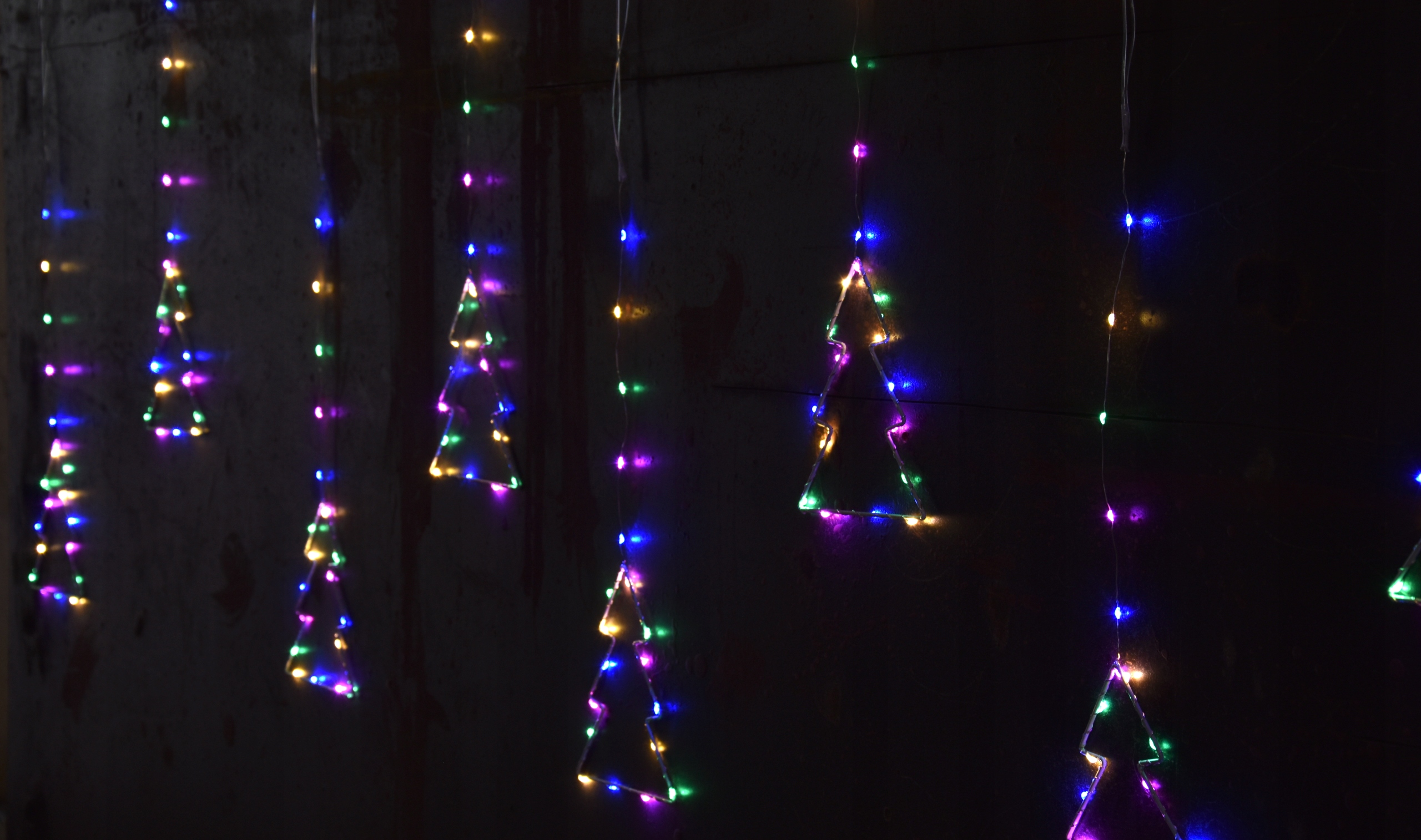 - Wspaniała kurtyna świetlna o kolorze wielokolorowym ma aż 160 pięknych punktów świetlnych przeplatanych drucikiem na metalowych 8 choinkach