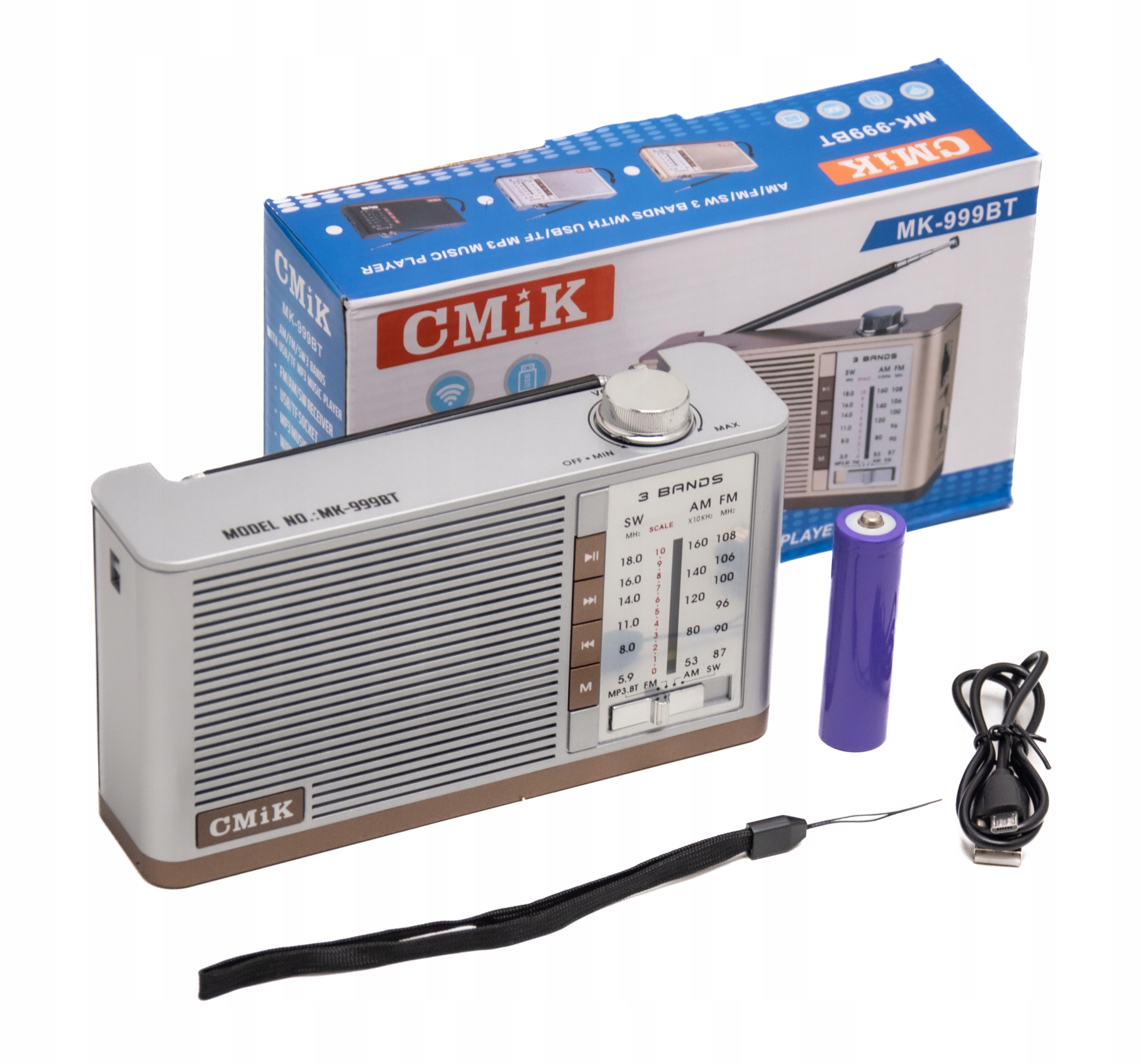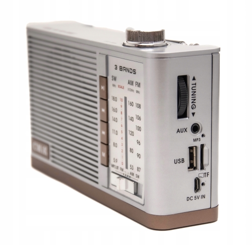 - zakres fal: radio FM: 87 MHz - 108 MHz, radio AM: 522–1620 kHz SW: 5.9-18.0 MHz