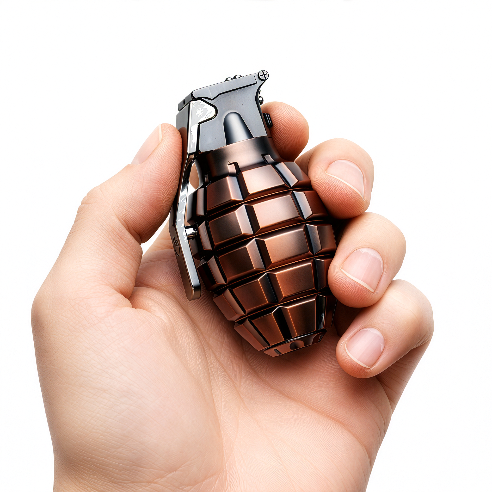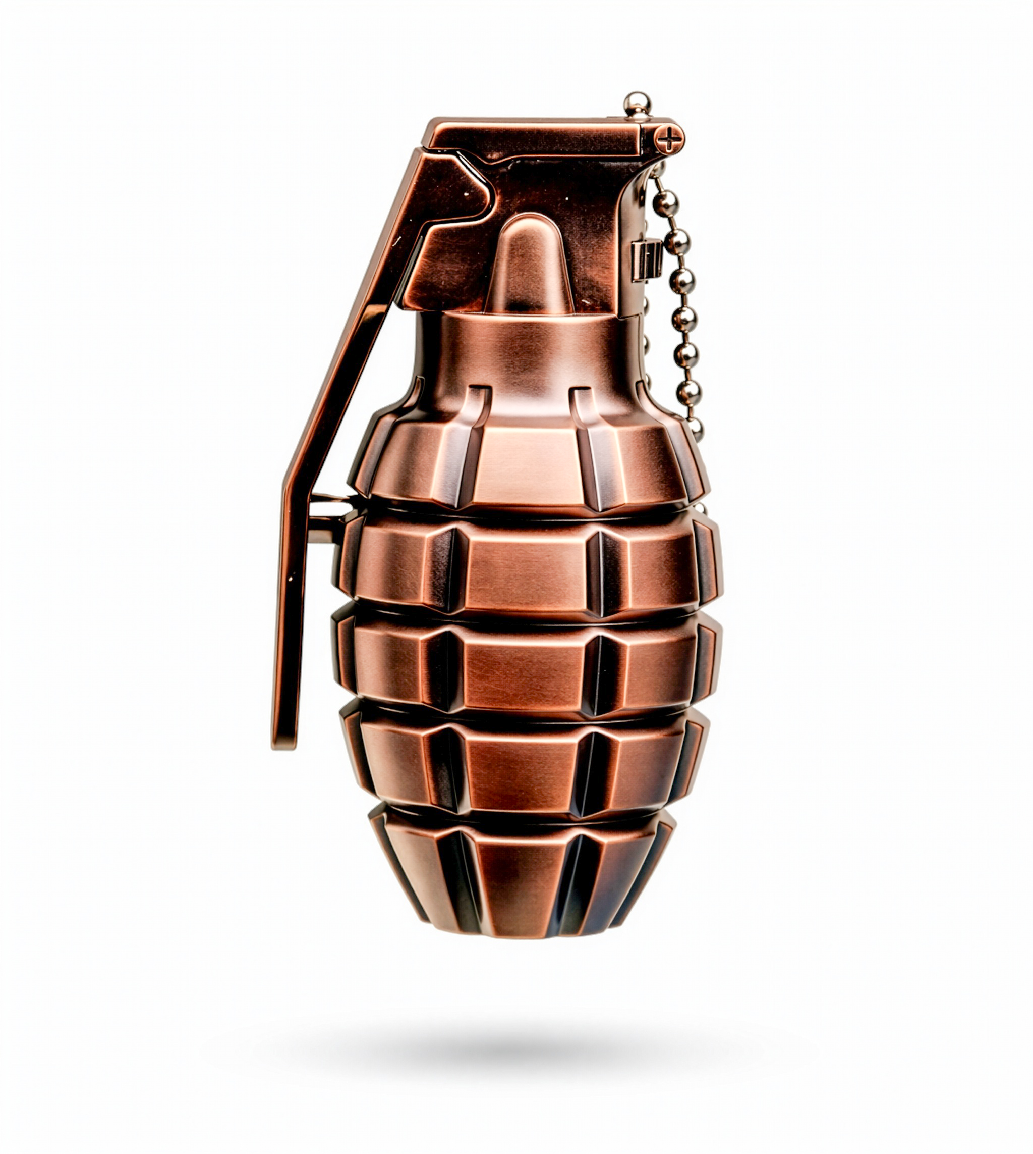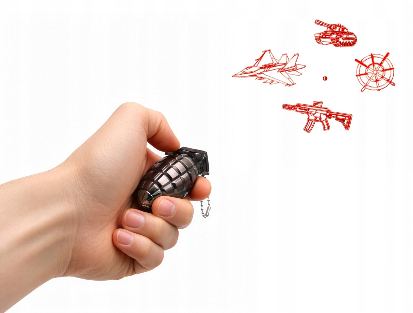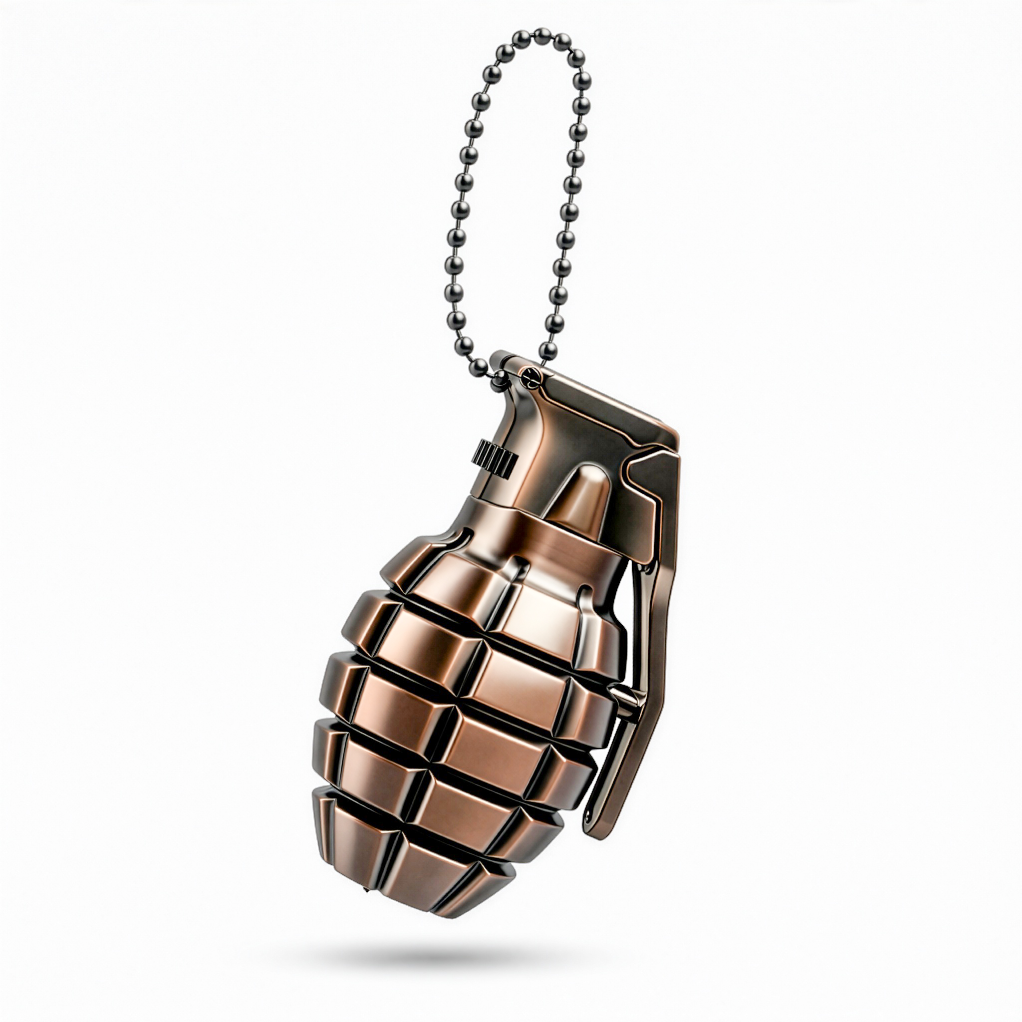 - Solidna obudowa w kształcie granatu z łańcuszkiem kulkowym – idealna jako brelok