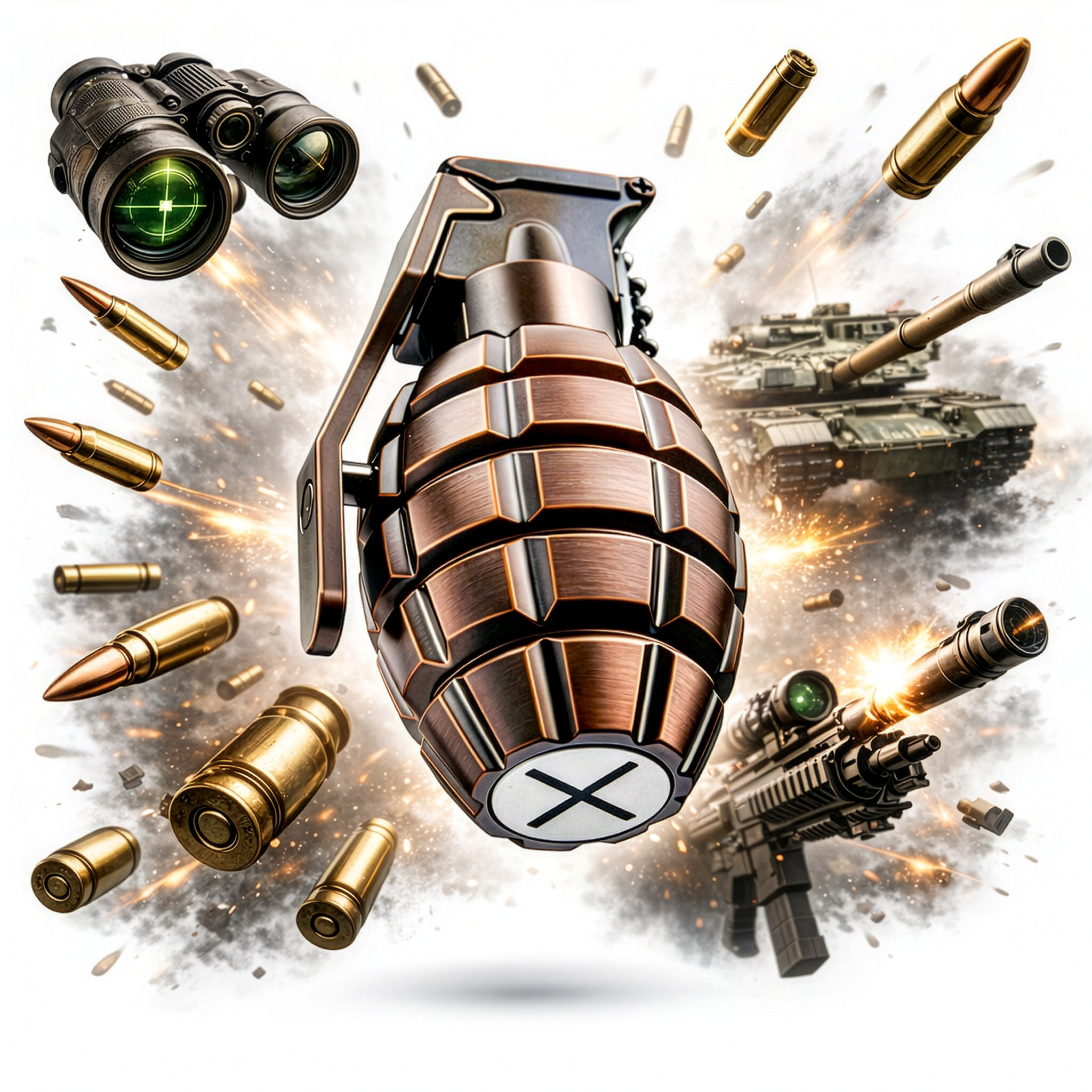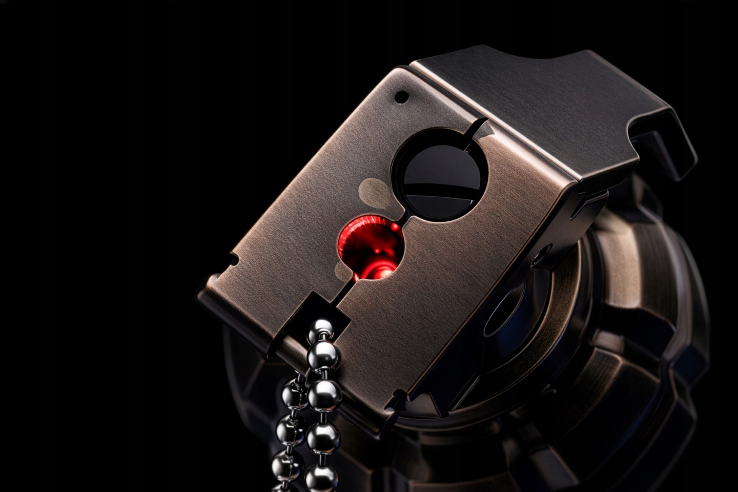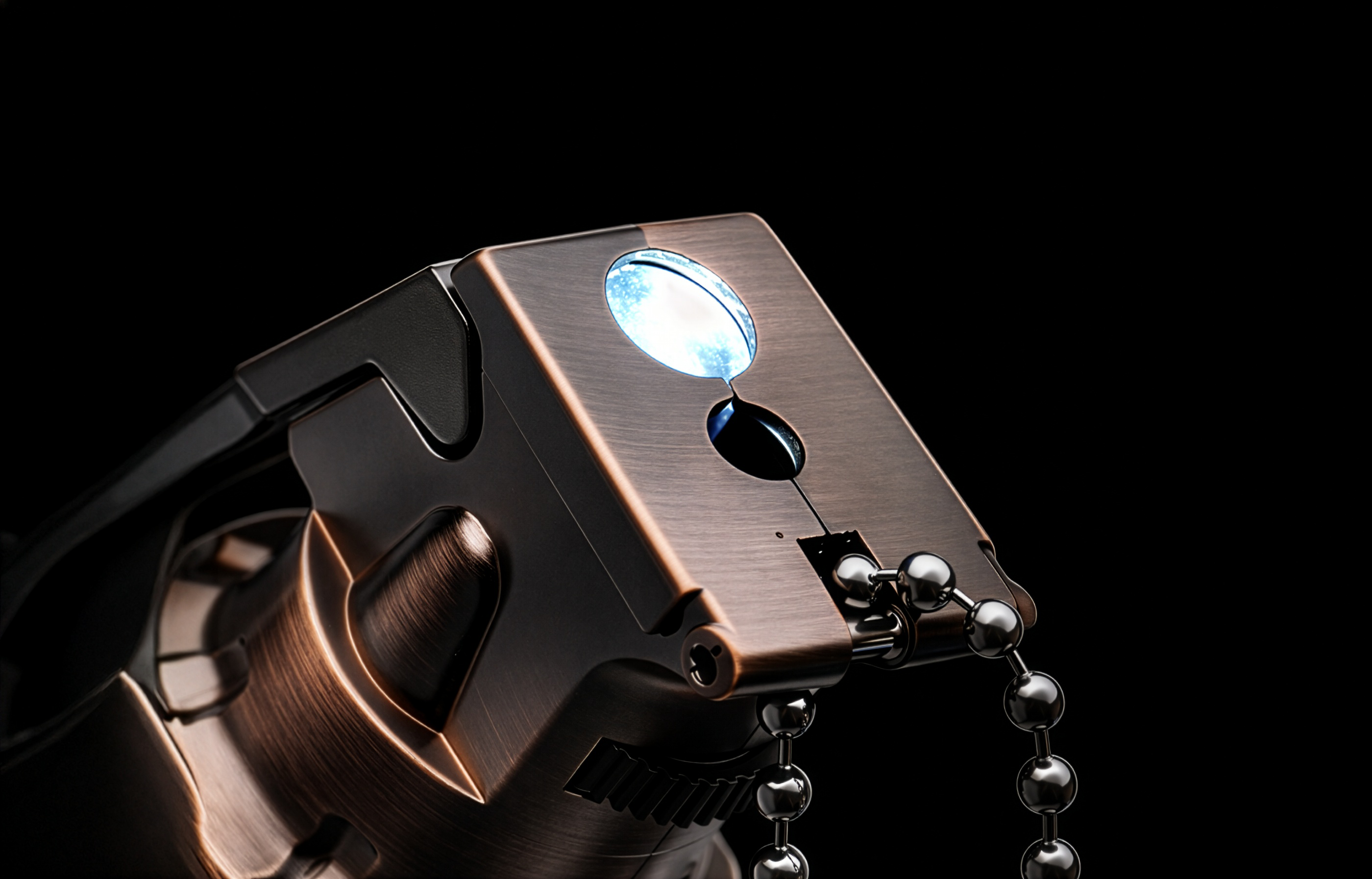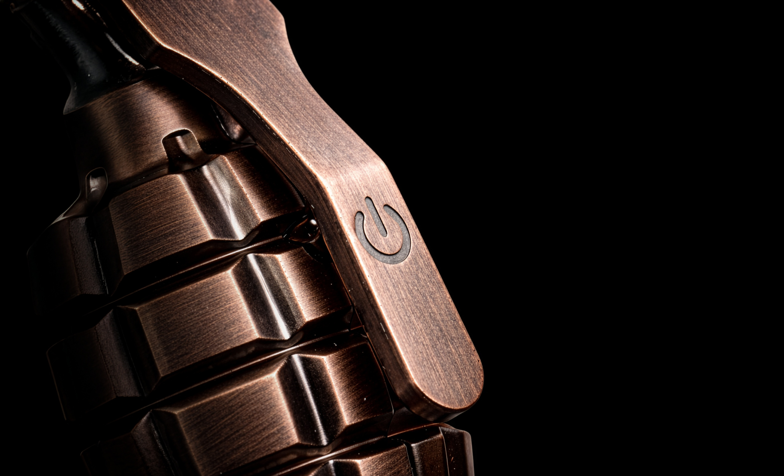 - Solidna obudowa w kształcie granatu z łańcuszkiem kulkowym – idealna jako brelok