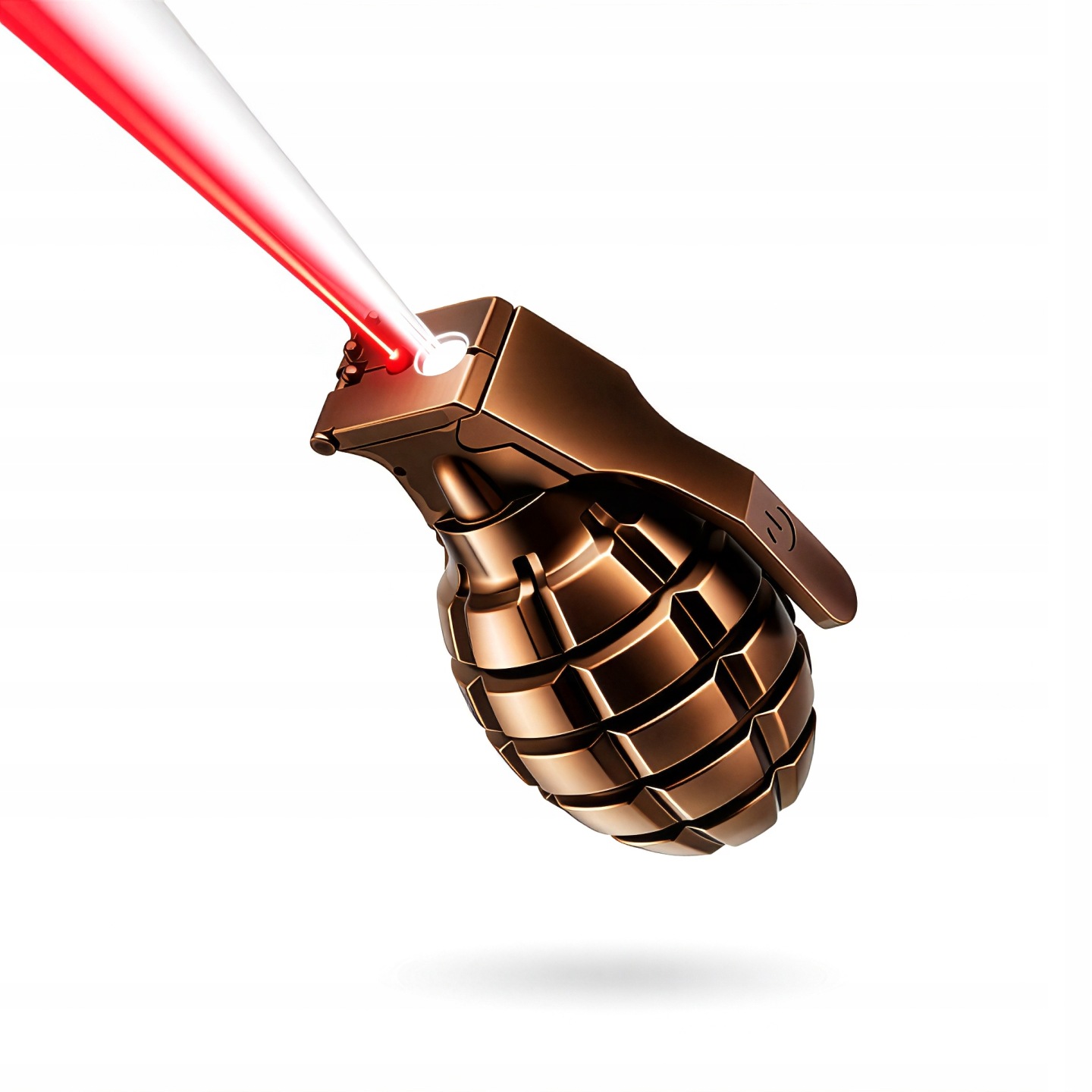 Wielofunkcyjny laser wskaźnik 3w1 w kształcie Granatu – laser czerwony z wzorami, latarka LED, brelok