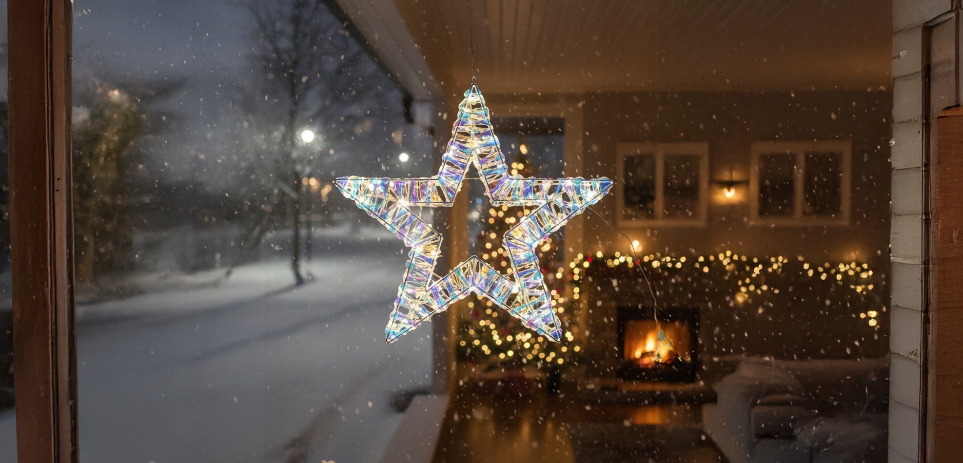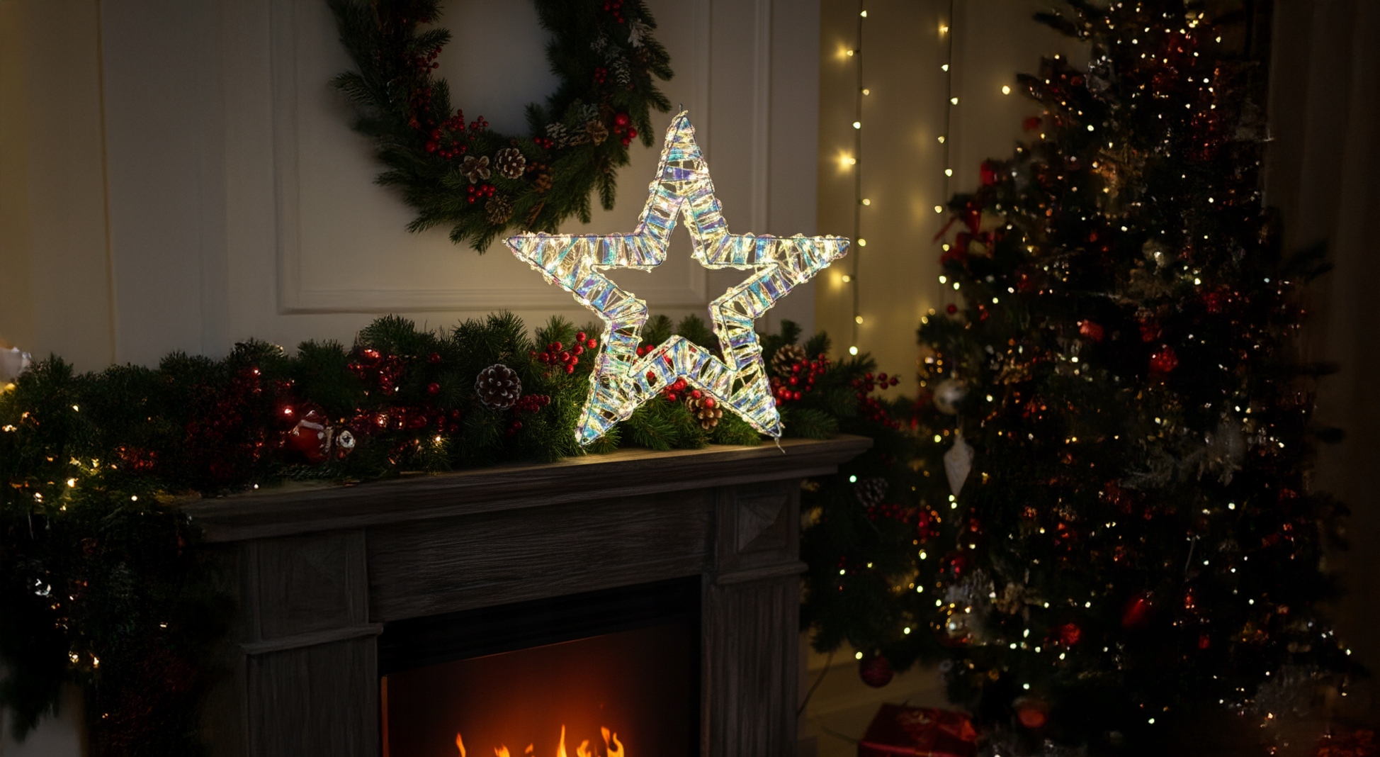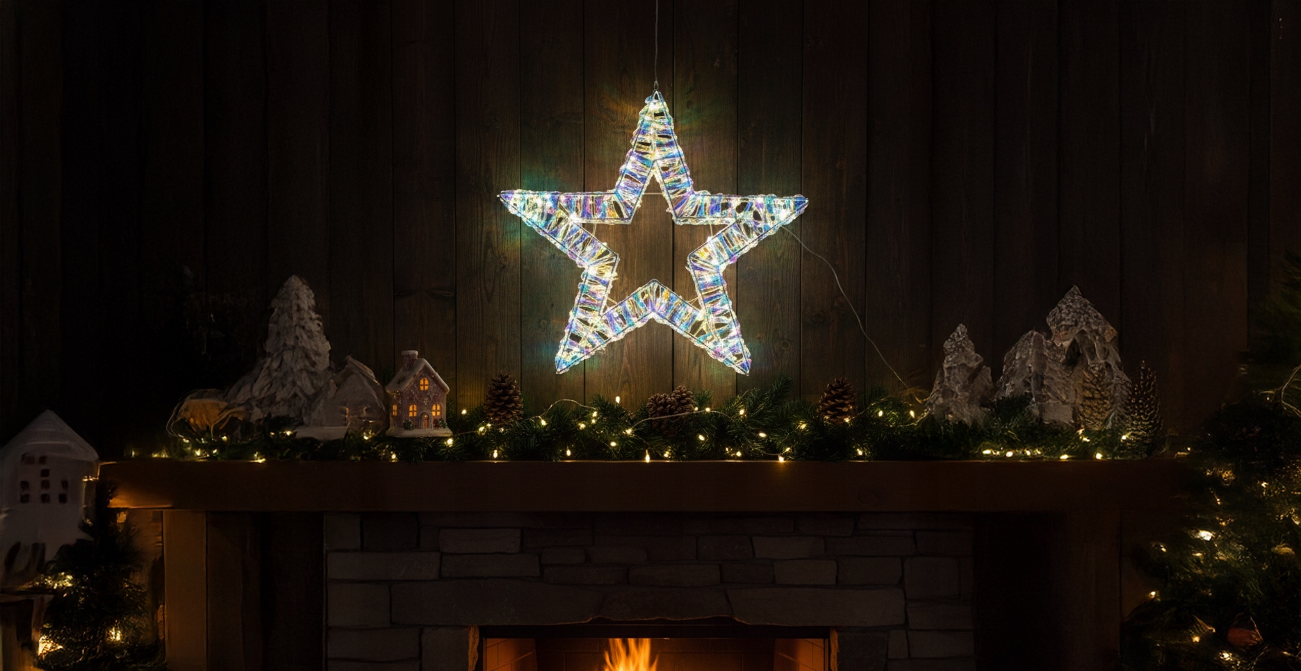 - Na górze gwiazdy znajduje się praktyczne metalowe kółeczko, dzięki któremu można łatwo zawiesić ją na oknie, drzwiach, nad kominkiem lub w pokoju dziecka, tworząc niepowtarzalny, ciepły klimat. Dekoracja posiada programator z 8 funkcjami świecenia, pozwalający dostosować styl oświetlenia do nastroju lub aranżacji świątecznej.
