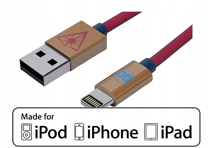 Oryginalny Kabel DC Wonder Woman 1,2m to kabel przeznaczony dla każdego urządzenia Apple, wyposażonego w standardowy dla urządzeń Apple slot lightning.