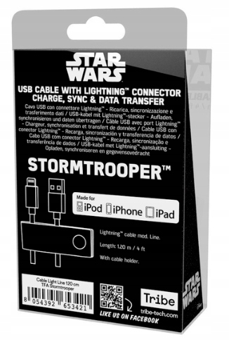 - Oryginalny Kabel STAR WARS STORMTROOPERS to kabel przeznaczony dla każdego urządzenia Apple, wyposażonego w standardowy dla urządzeń Apple slot lightning.