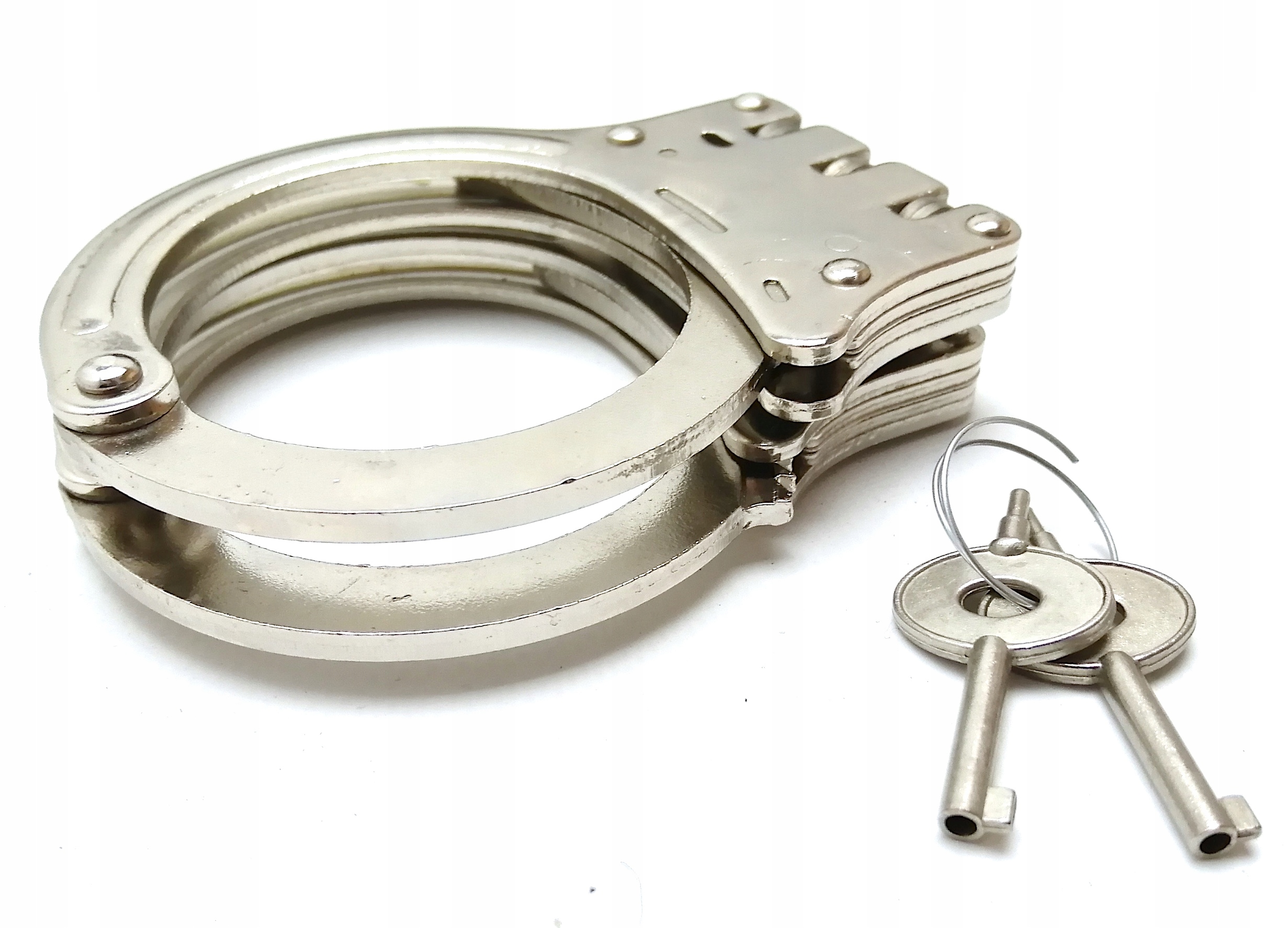 Kajdanki spełniają wymogi jakościowe. Zawiasowa konstrukcja pewnie obezwładnia ręce i zdecydowanie bardziej ogranicza zakres ruchów.