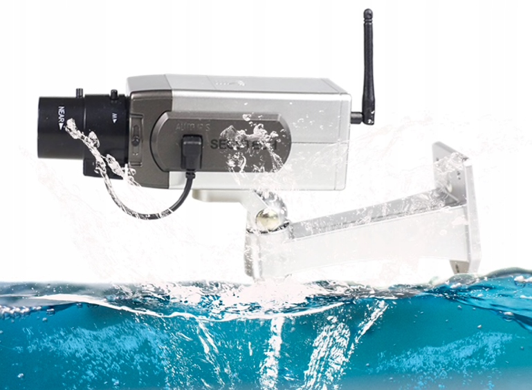 WODOODPORNA, DO ZŁUDZENIA PRZYPOMINAJĄCA PRAWDZIWĄ KAMERĘ ATRAPA Z WBUDOWANĄ DIODĄ LED, KTÓRA PRZYCIĄGA WZROK I DAJE DO MYSLENIA POTENCJALNEMU RABUSIOWI