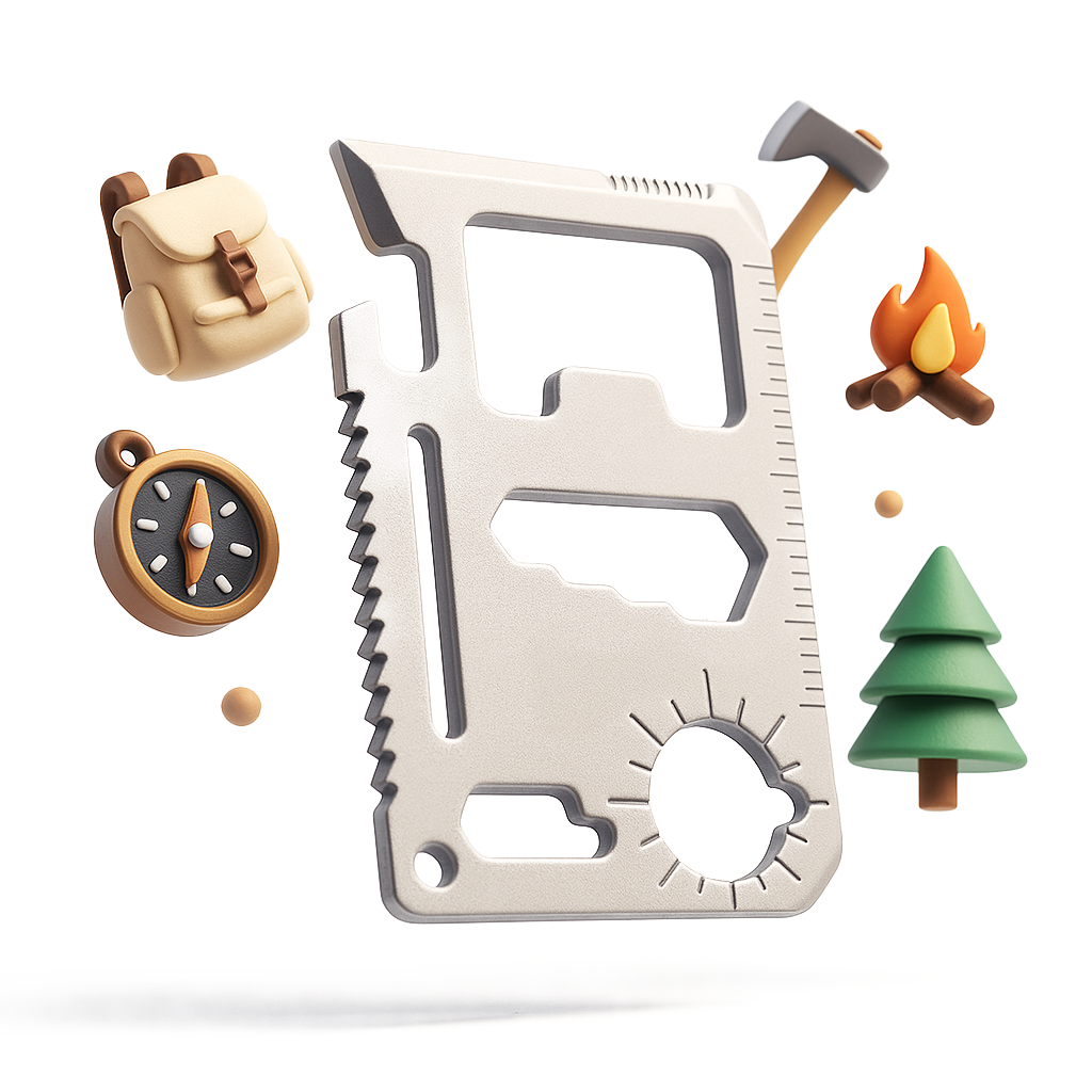 - Narzędzie jest wykonane ze stali nierdzewnej 304, doskonała jakość wykonania i trwałość Multitool wielofunkcyjny wszystko w jednej karcie( klucz, otwieracz do butelek, śrubokręt , linijka, obieracz i wiele innych ) idealne do uprawiania turystyki pieszej i campingu.