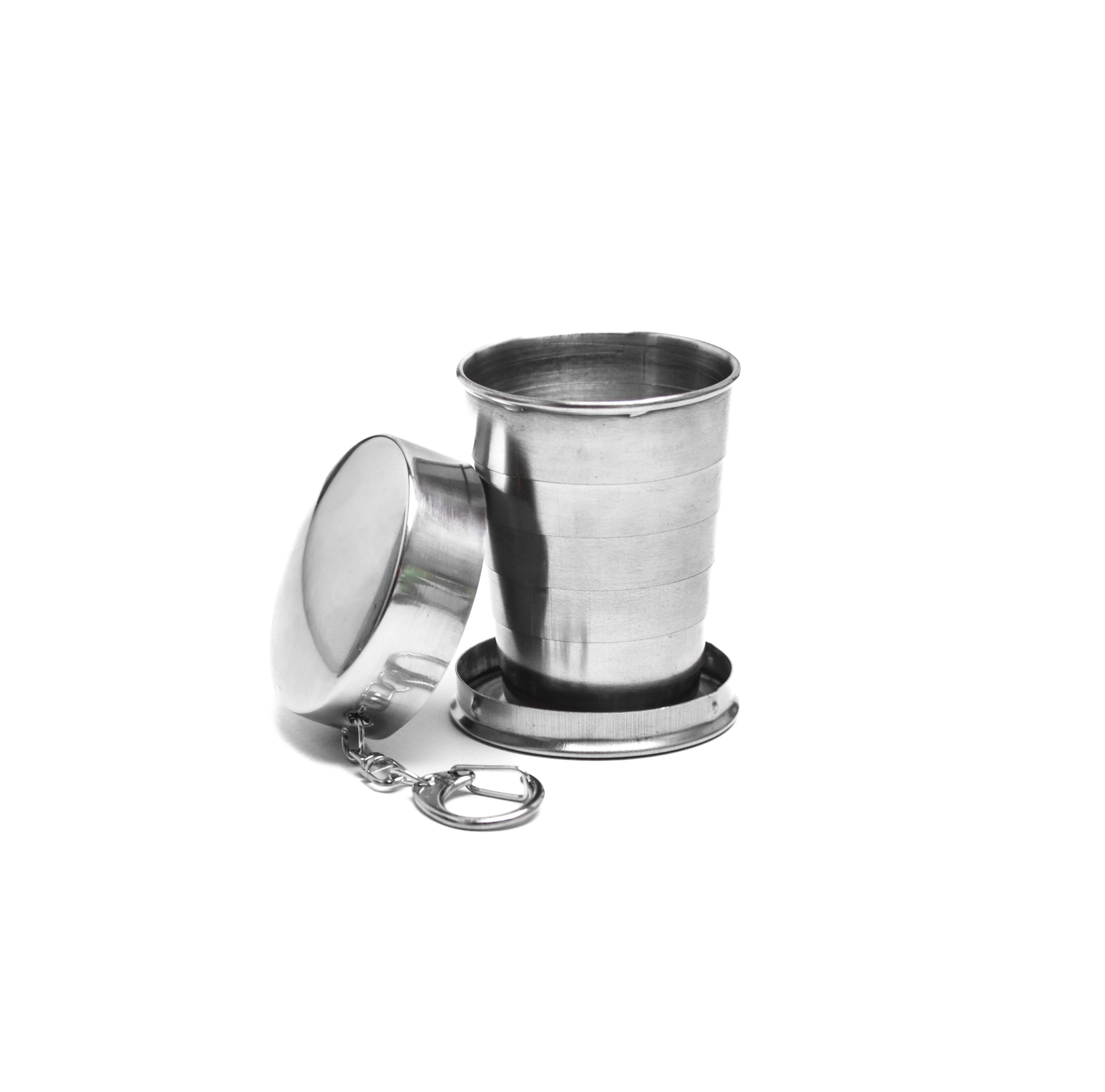 - Kieliszek składany teleskopowo dzięki czemu zajmuje mało miejsca i idealnie nadaje się jako brelok do kluczy. Wykonany jest ze stali nierdzewnej, co pozwala zachować jego długą trwałość.