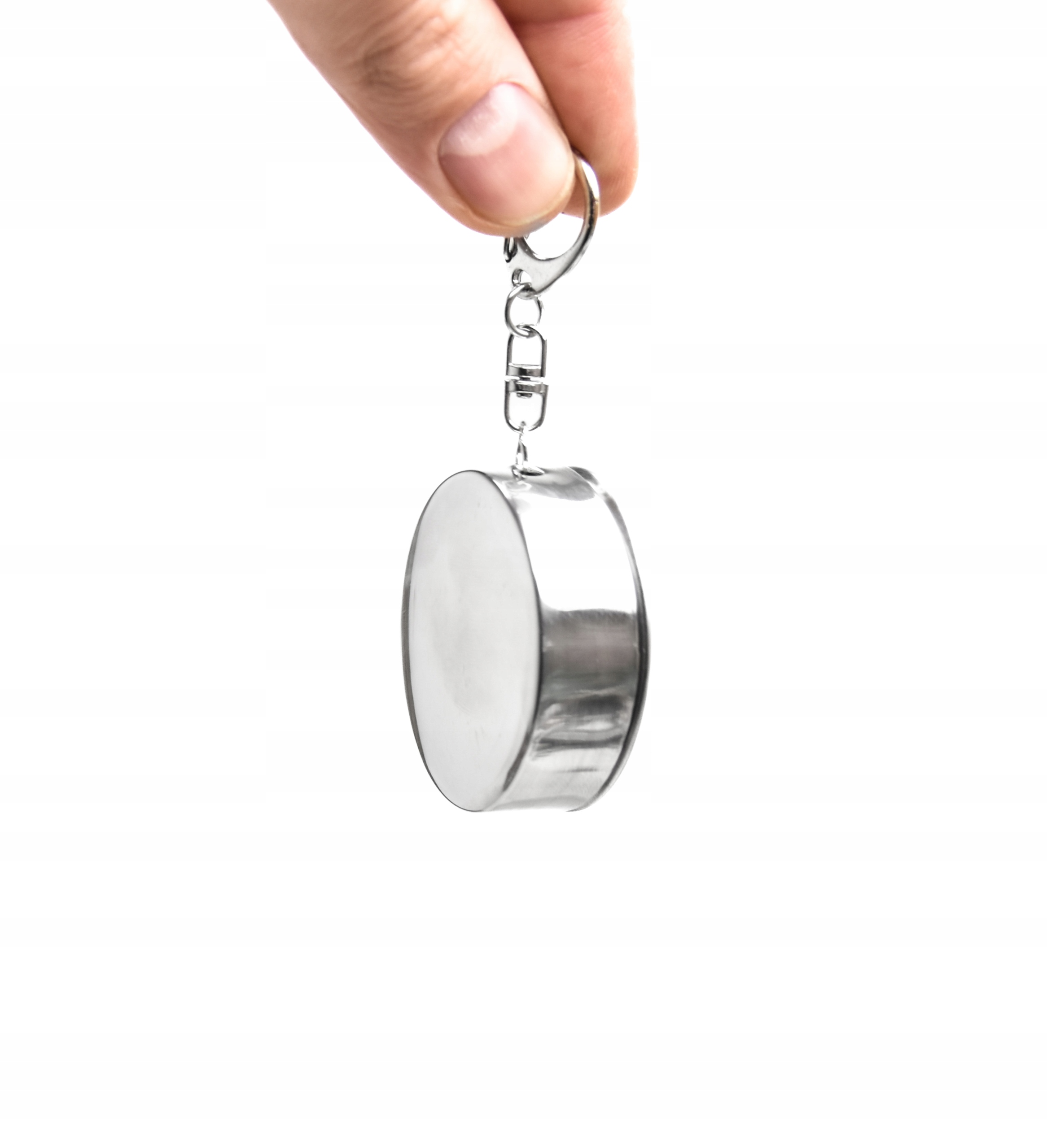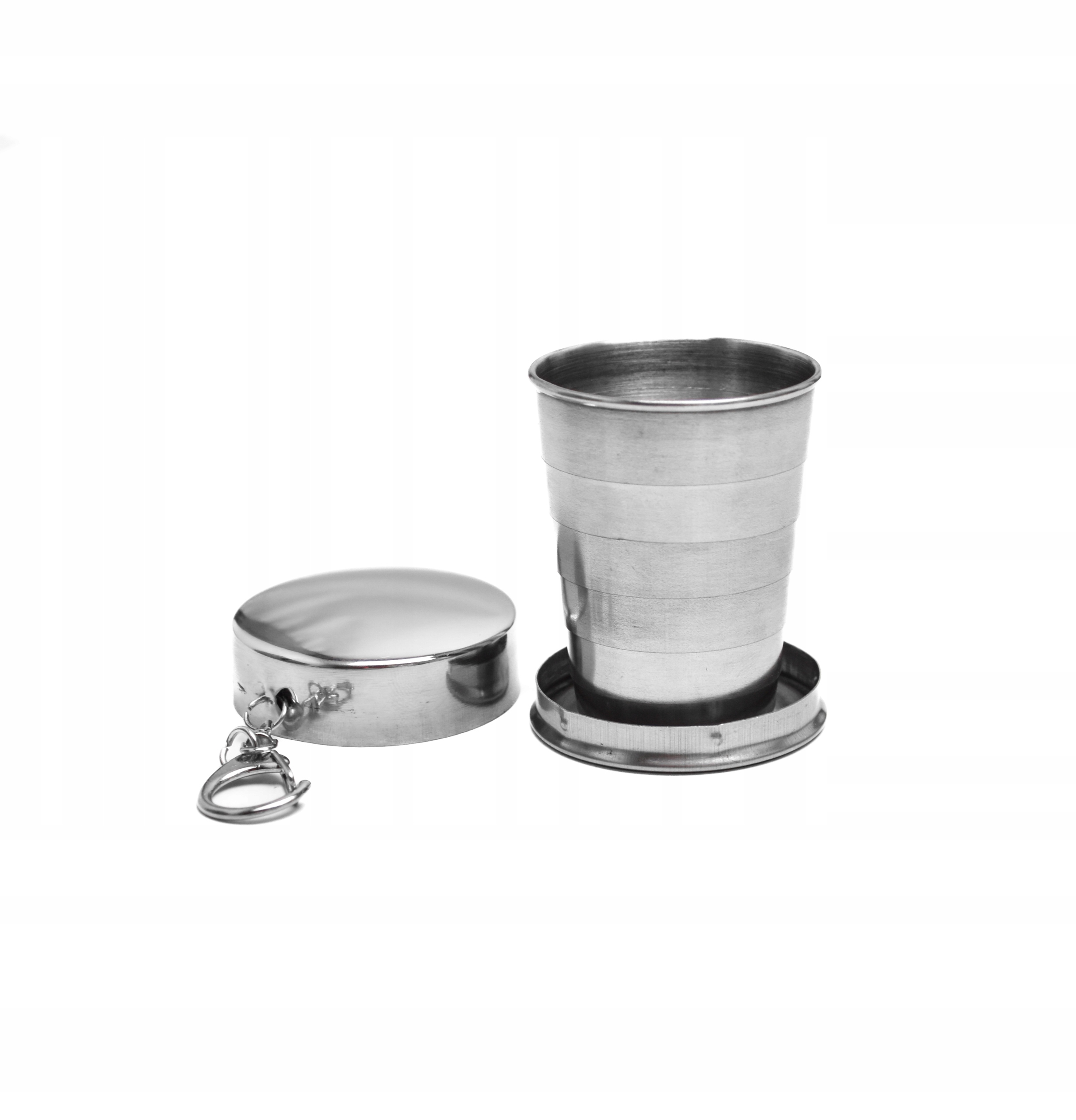 - Składany, turystyczny, podróżny kieliszek z solidnego metalu. Uchwyt do zawieszenia np. na smyczy lub doczepienia do kluczy. Wygodny i praktyczny. Zmieści się w kieszeni i zawsze możesz go mieć przy sobie.