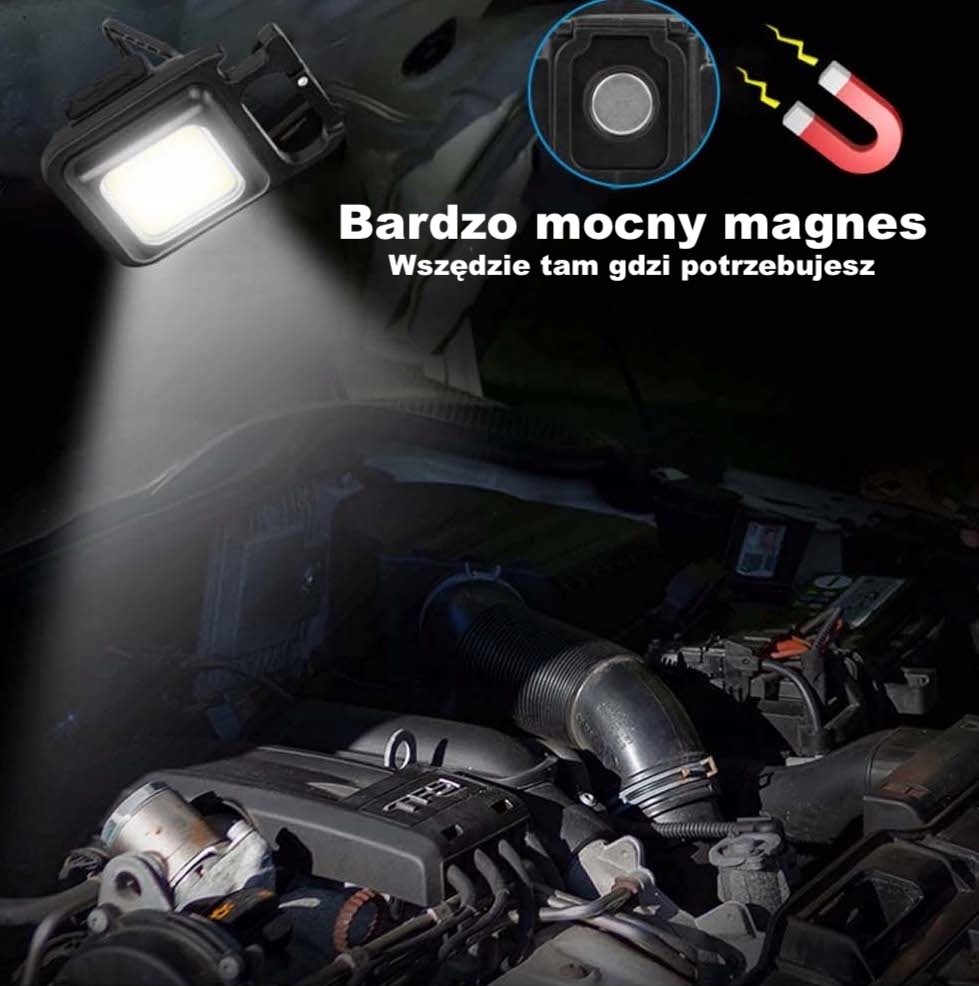KIESZONKOWA LATARKA BRELOK LED COB WARSZTATOWA MOC