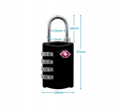 KŁÓDKA TSA PODRÓŻNA BAGAŻ 4 CYFROWA SZYFR SZYFROWA