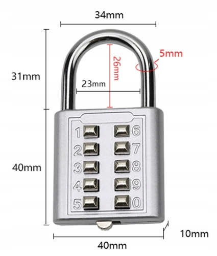 Kłódka szyfrowa (kodowa) mechaniczna 10 cyfrowa