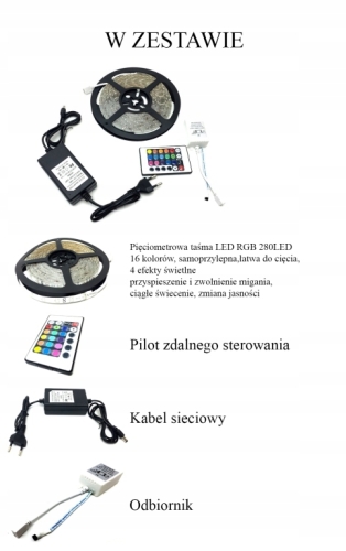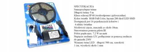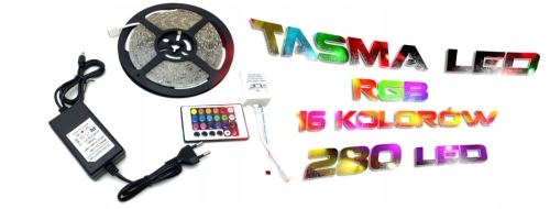 KOLOROWA TAŚMA LED SMD RGB PILOT 5M DIODY 16 KOLOR