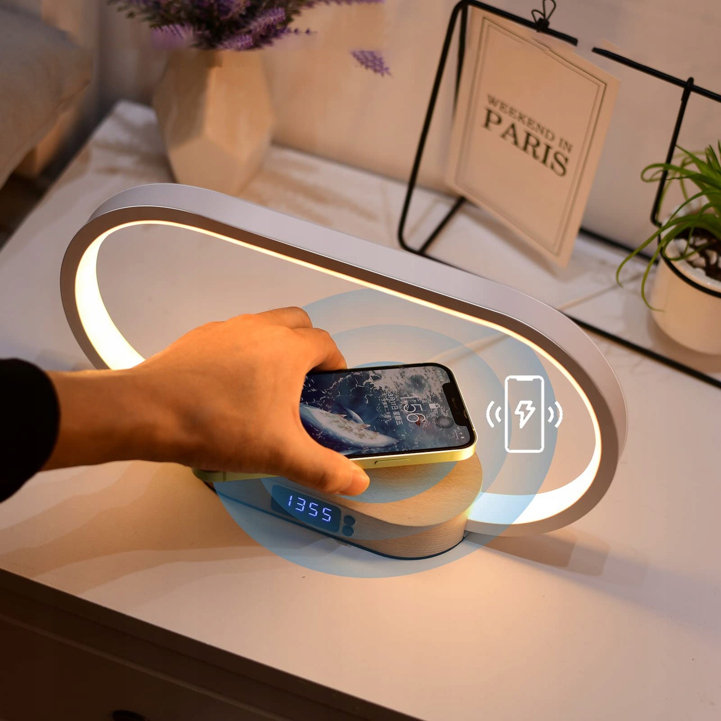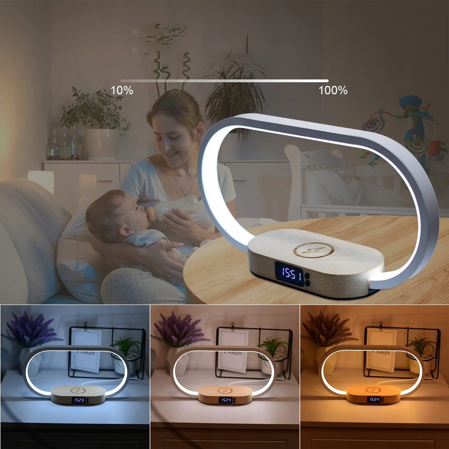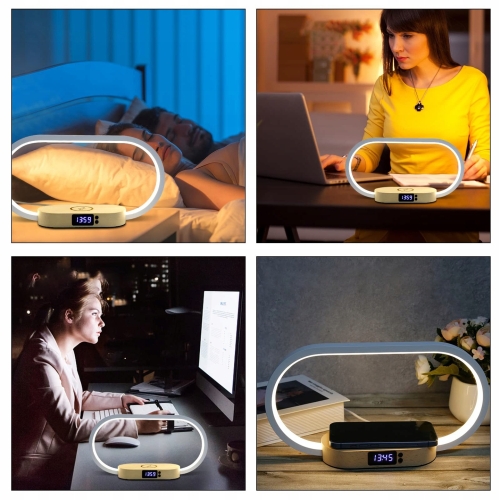 - Lampa biurkowa ma wbudowaną funkcję zegara.Dzięki tej lampce nocnej z funkcją ładowania bezprzewodowego możesz sprawdzić godzinę w dowolnym momencie podczas pracy, nauki, czytania i snu.