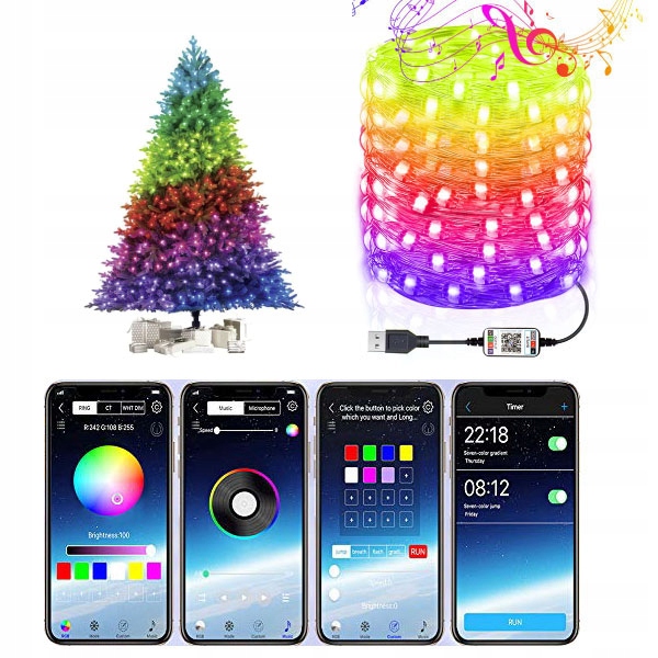 Inteligentne lampki choinkowe 100 LED Multikolor BLUETOOTH USB