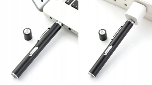 - To niewielkie urządzenie ma wbudowany akumulator i ładuje się je przez złącz USB, mocna latarka LED typu BEAM (okrągłe światło przypominające to, które oświetla aktorów na scenie)