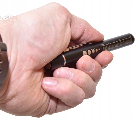 - Miarka o długości 5cm i miarka średnicy okręgu o max. śr. 6mm umieszczono na obudowie lasera