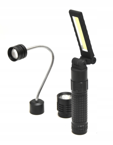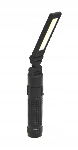 - Moduł COB - Dedykowana końcówka z energooszczędną diodą COB przekształca latarkę w składaną lampę warsztatową z regulacją
