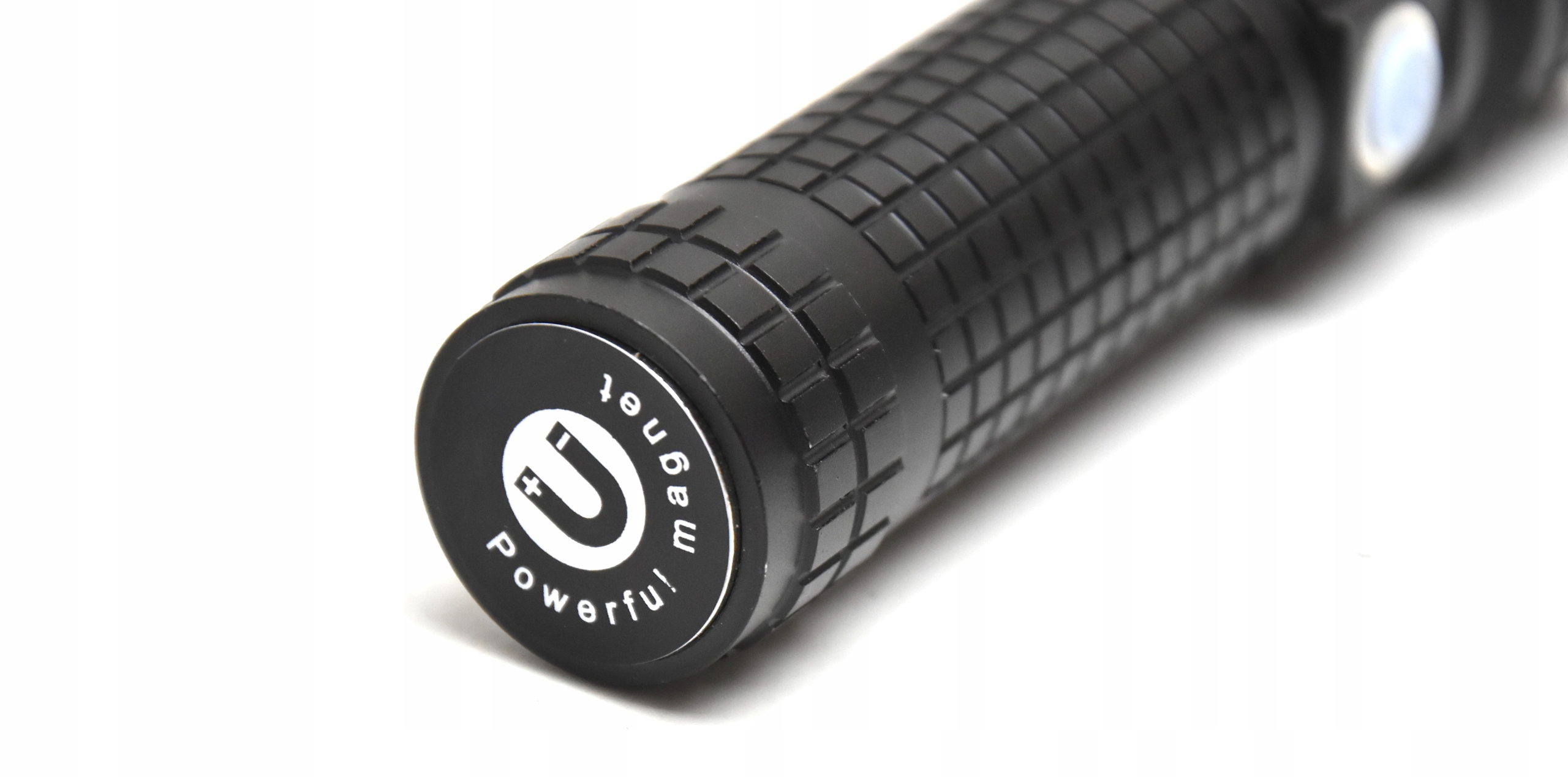 - U podstawy latarki zamontowano silny magnes dzięki któremu będziemy mogli przymocować latarkę i pracować bez użycia rąk