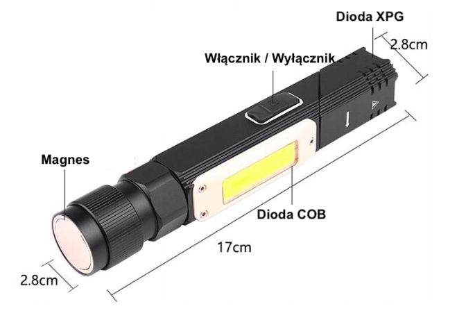 LATARKA KĄTOWA AKUMULATOR MAGNES USB COB XML LED