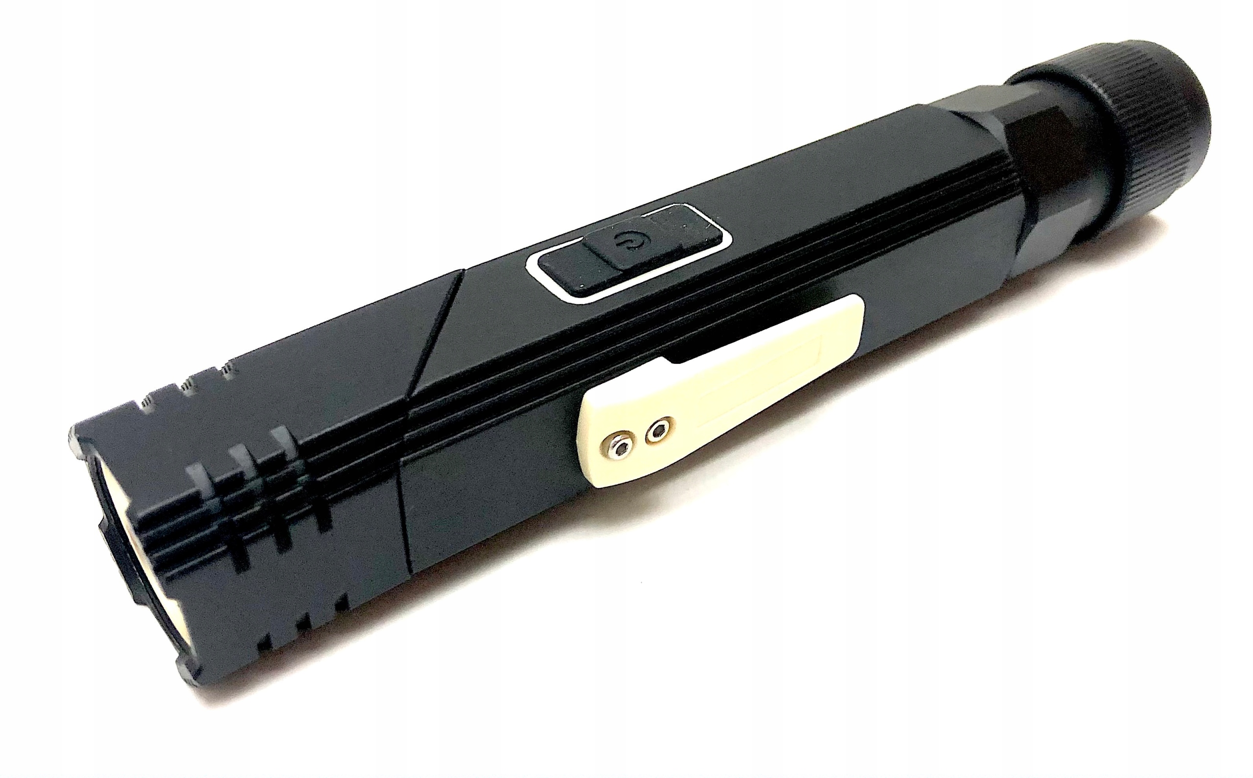 Latarka została wykonana z lotniczego aluminium, posiada dwa punkty świetlne, ruchoma głowicę, mocny ruchomy magnes, zaczep.