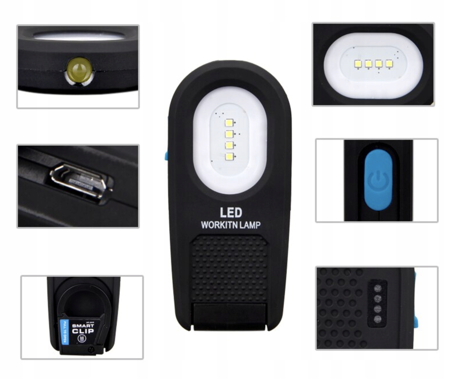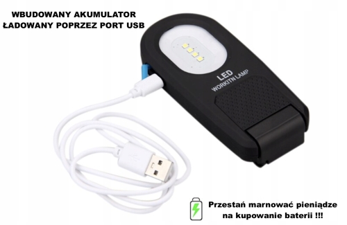 LATARKA LAMPA WARSZTATOWA SMD LED MAGNES HAK USB