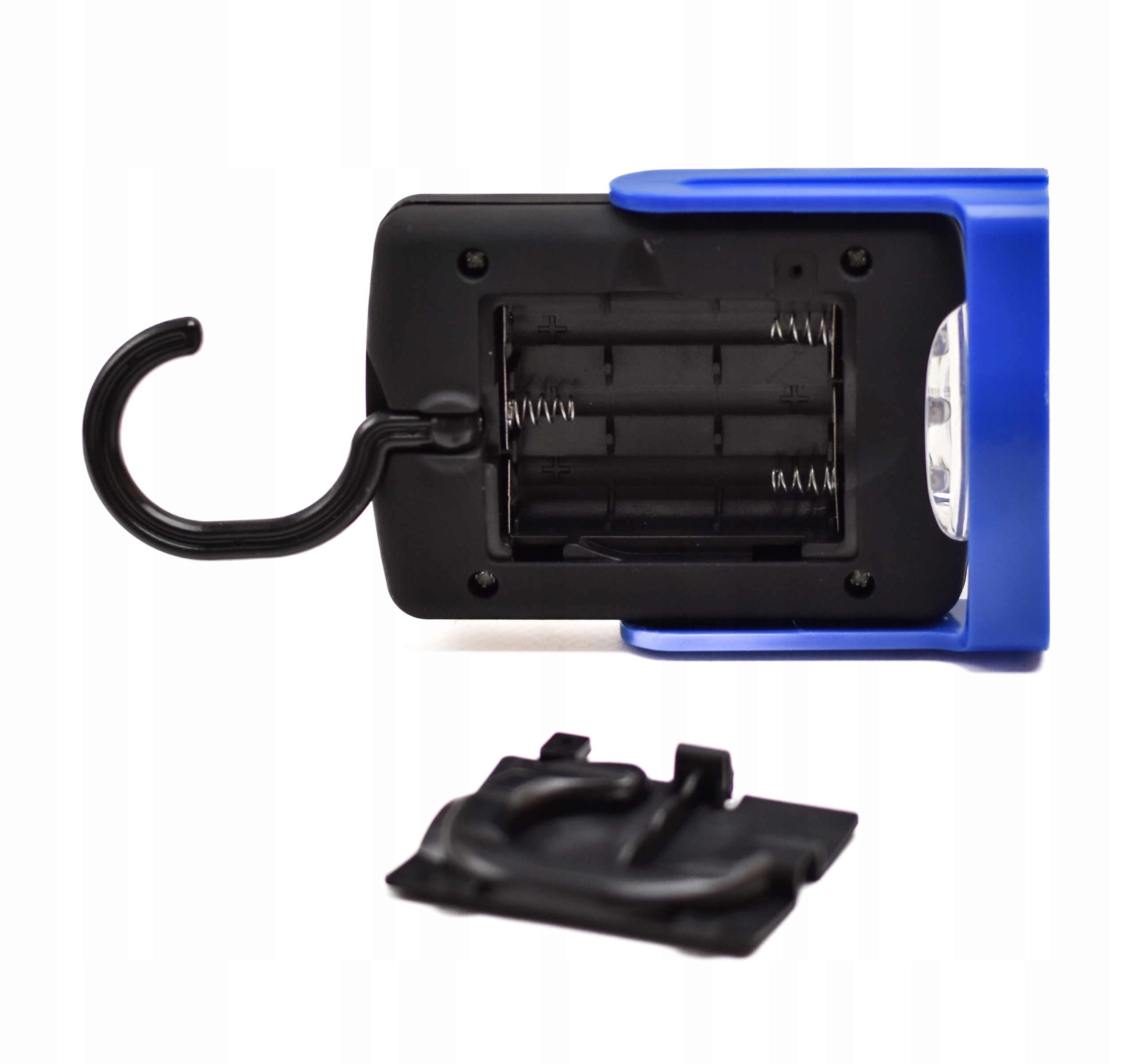 - Niebywałym atutem tej latarki warsztatowej jest to że posiada aż trzy opcje przywieszenia lub postawienia ponieważ posiada podstawkę, hak i magnes.
