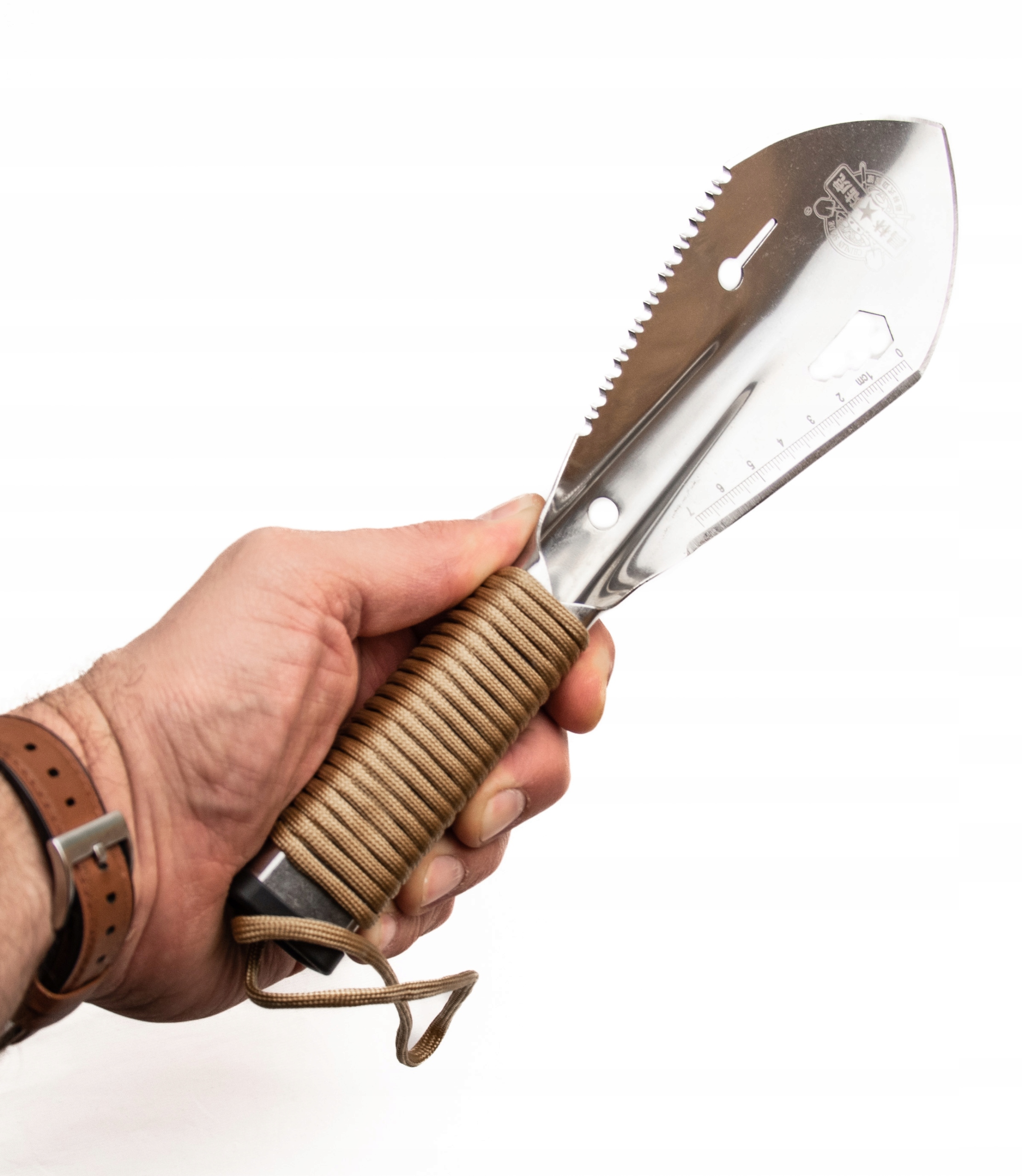 - Można ją wykorzystać jako saperkę, motykę, piłę, otwieracz do puszek, a nawet jako klucz oczkowy w czterech różnych rozmiarach.