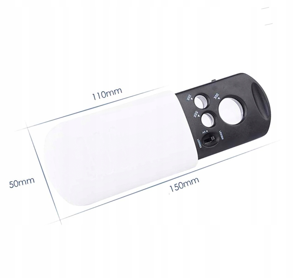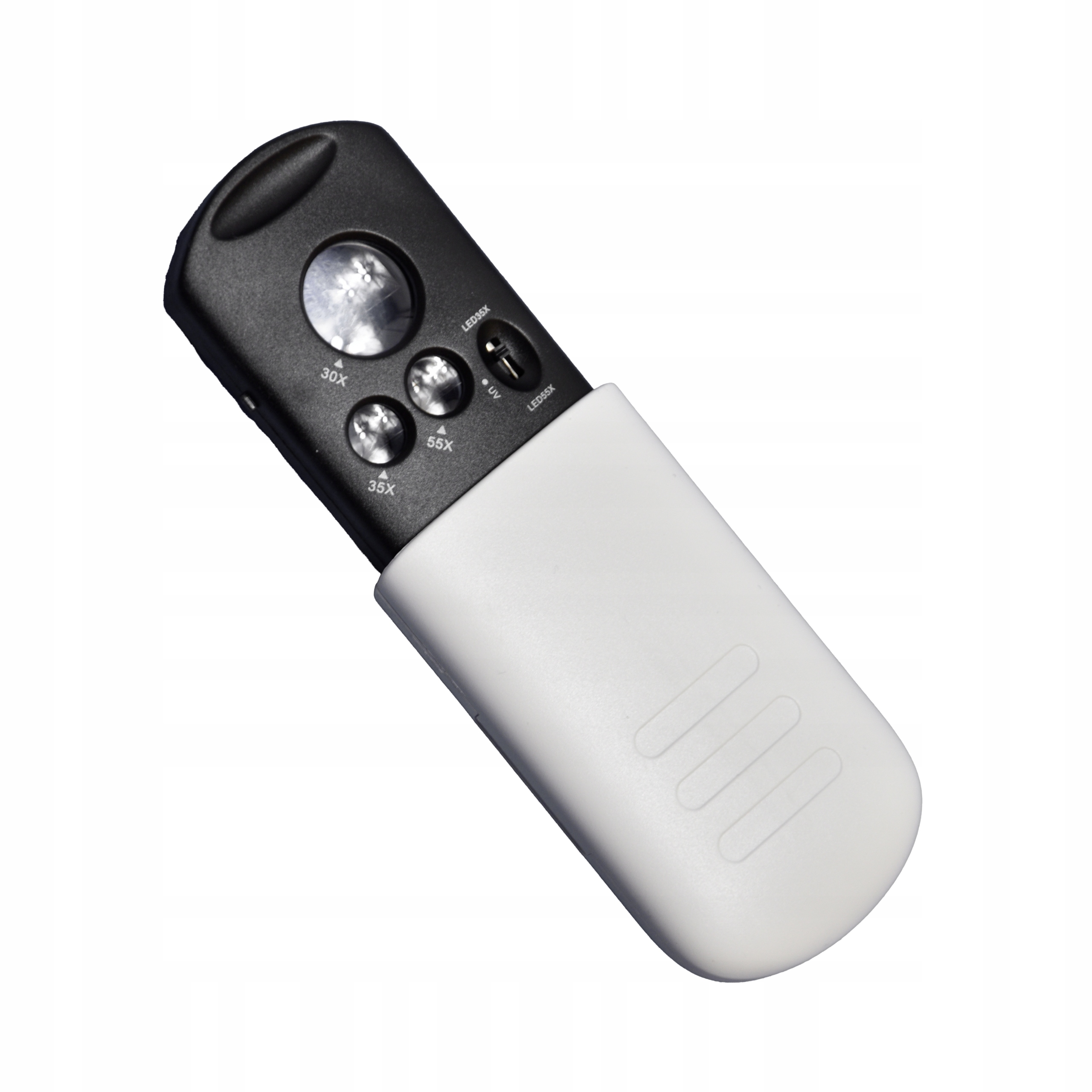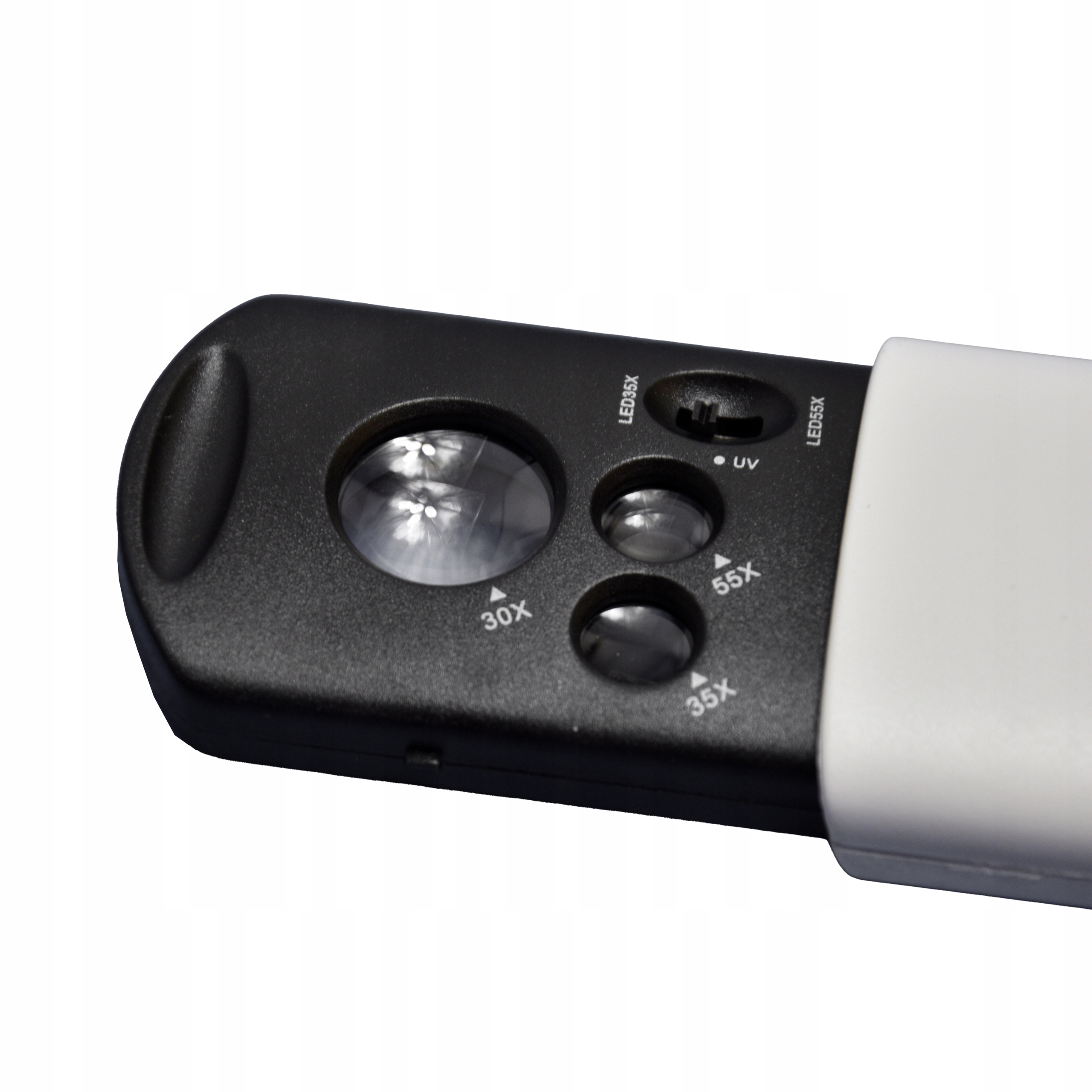 - Profesjonalna podświetlana lupa do czytania z trzema soczewkami 55x, 35x, 30x oraz z dodatkową funkcją ultrafioletu UV